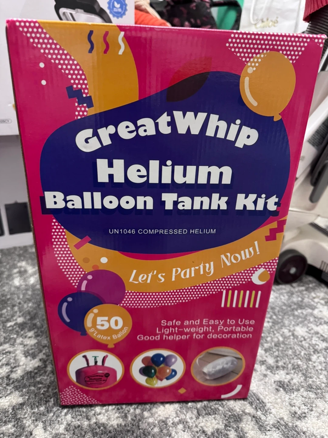 Get ready to party with this GreatWhip Helium Balloon Tank Kit! It's perfect for any celebration and comes with 50 latex balloons. The kit includes helium/air mixture tank and a spool of white ribbon. Safe and easy to use, lightweight, and portable, it's a good helper for decoration