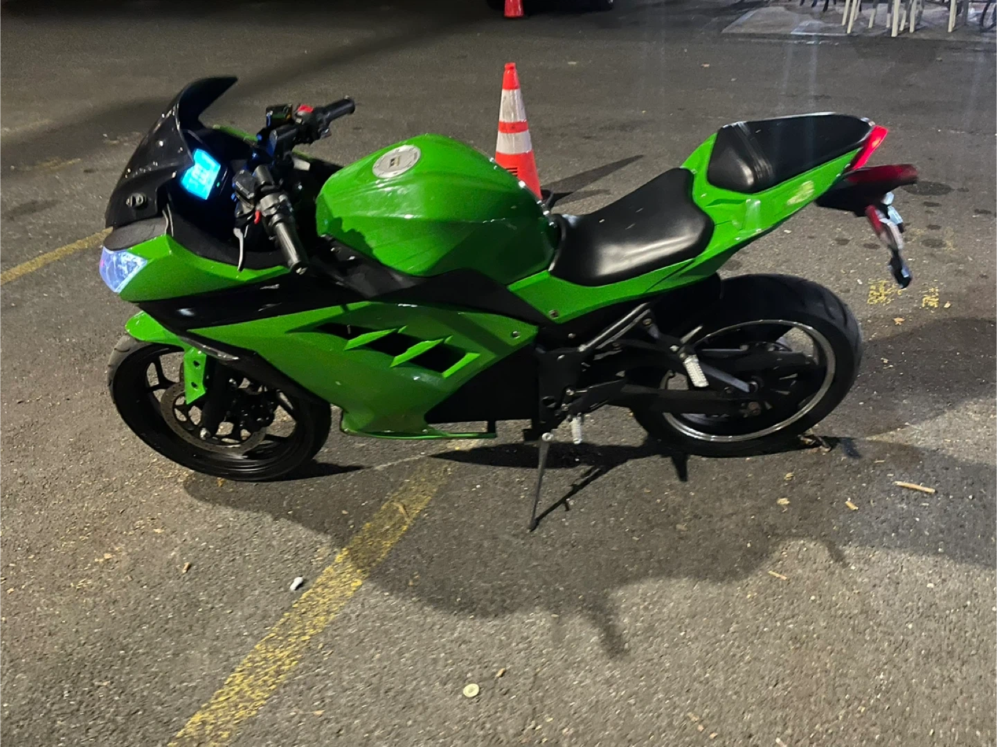Selling a green electric motorcycle. Looks to be in good condition and ready to ride! And trade two dirtbike 150 cc or a 250 cc