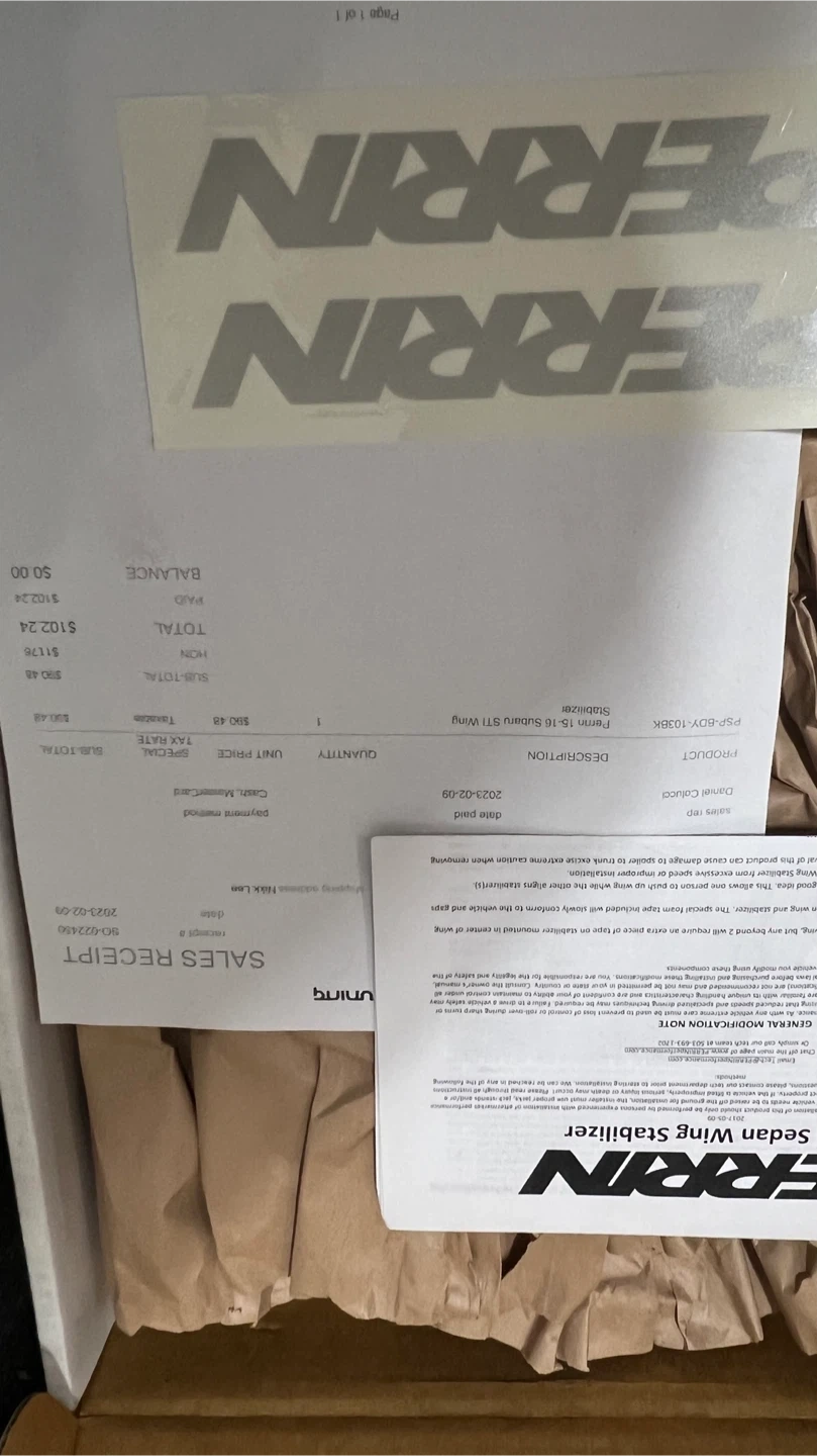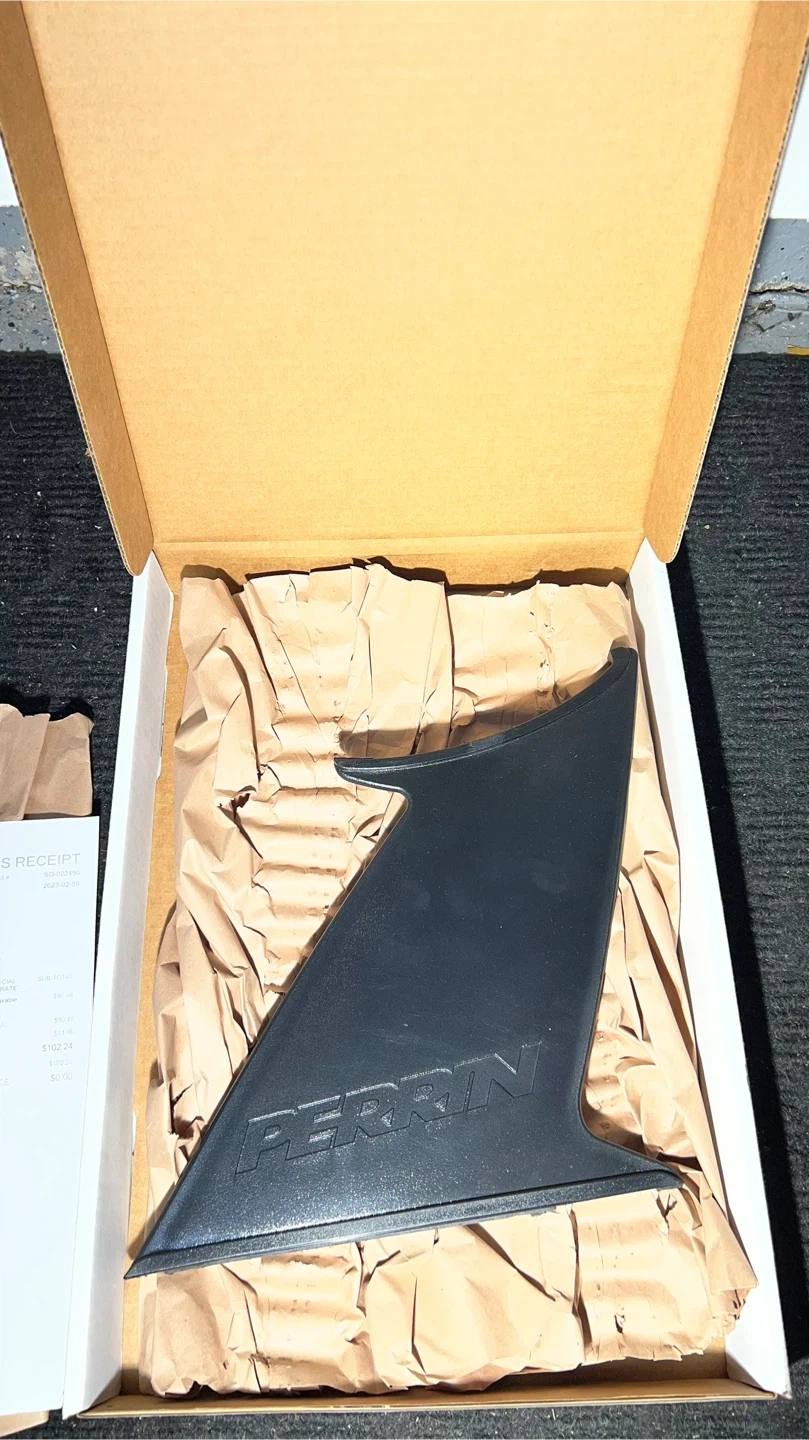 This is a Perrin wing stabilizer for a 2015-2020 Subaru STI. It's made of durable black plastic. Includes original box and paperwork.