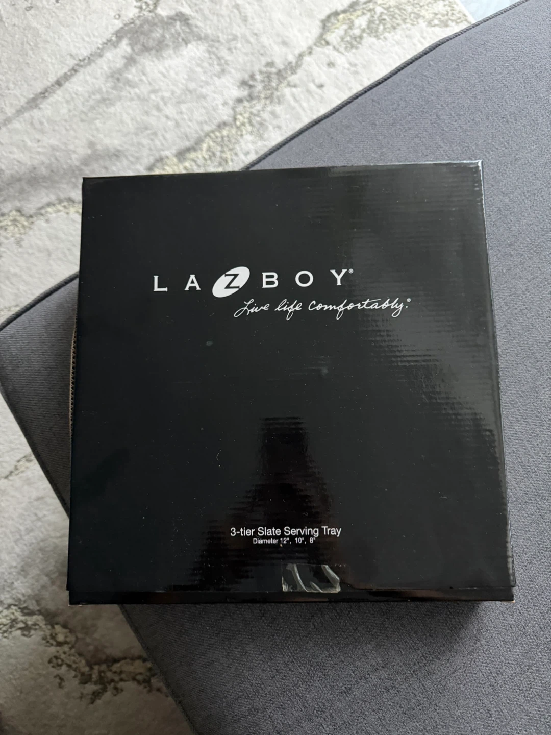 Selling a brand new La-Z-Boy 3-tier slate serving tray! It's still in its original packaging and has never been used. The diameters of the tiers are 12", 10", and 8". Perfect for entertaining or adding a touch of elegance to your home
