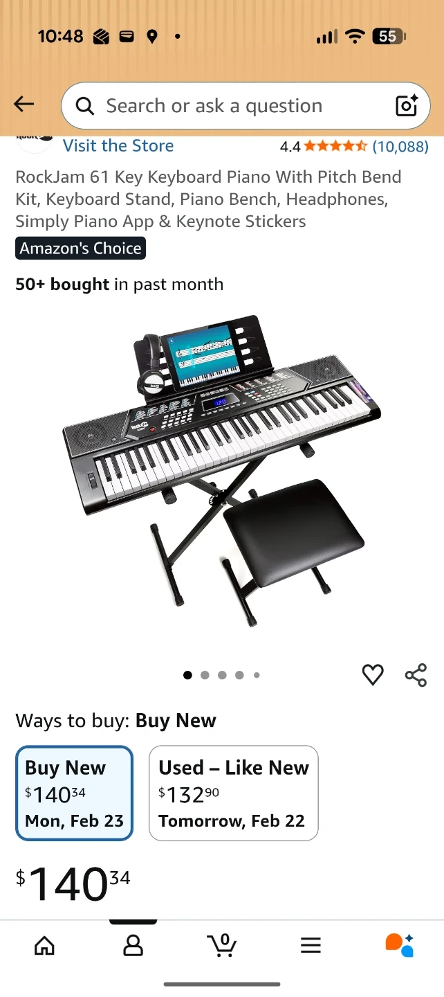Bought this from Amazon a while back. A RockJam 61-key electronic keyboard piano. Comes with a keyboard stand, headphones and a bench. Everything comes in its original box, hasn't been opened.