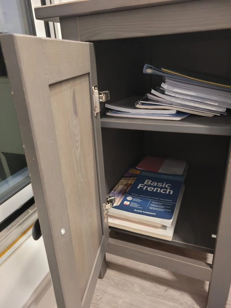 IKEA Hemnes desk! It features a cabinet on one side and two drawers on the other, providing ample storage space. It's perfect for a home office or study area.