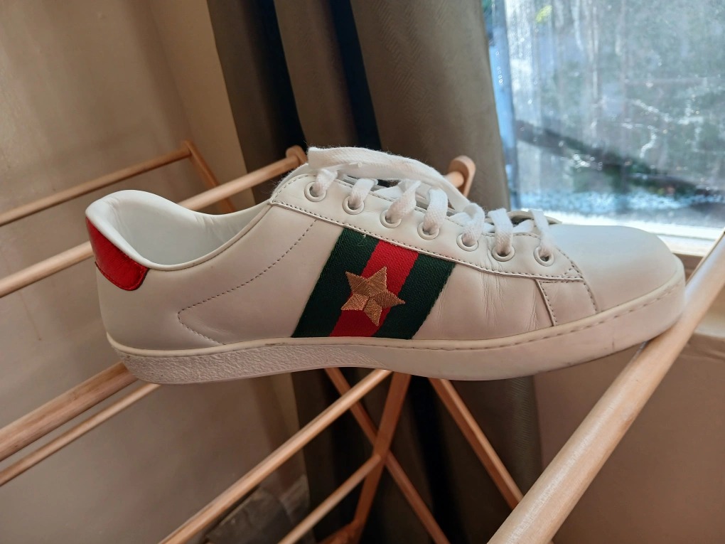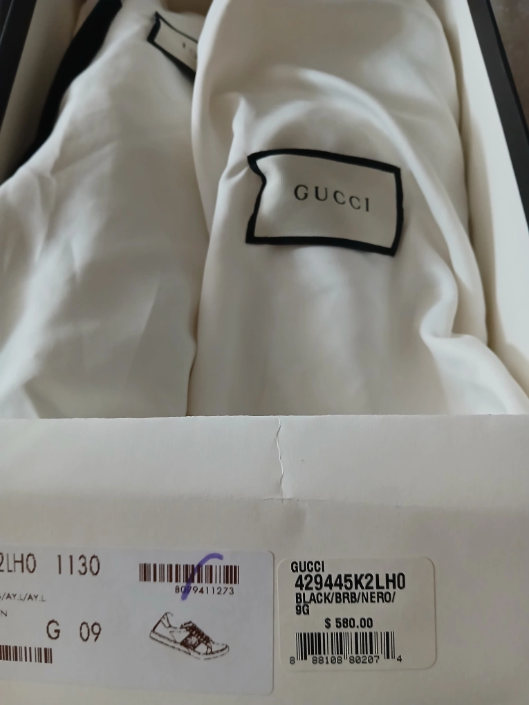 Selling a pair of Gucci sneakers, model 429445K2LH0 in black/BRB/NERO/9G. The original price was $580.00. Comes with the original box!