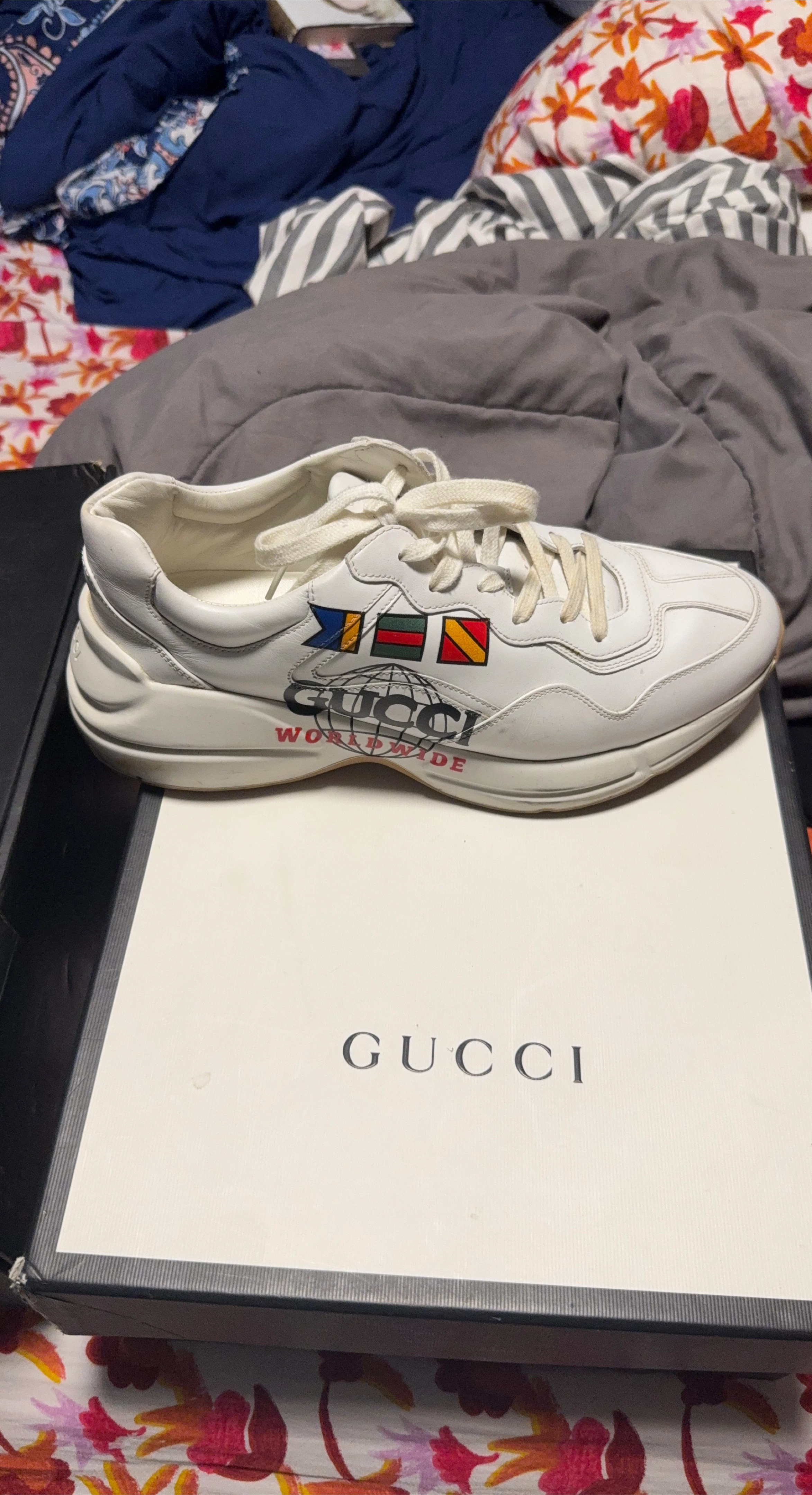 Selling a pair of Gucci Worldwide sneakers. They are white and come with the original box. Great condition!