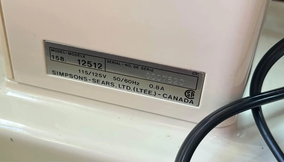 Excellent condition. Stitches and works fast. Missing base, however does not affect anything. No manual. Comes with case covering. Serial number: 0007520 Model: 158.12512