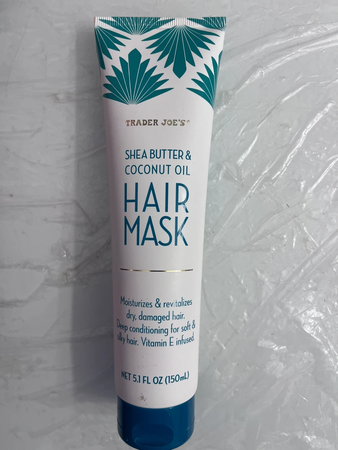 Trader Joe's Shea Butter & Coconut Oil Hair Mask for deep conditioning. Moisturizes and revitalizes dry, damaged hair. Vitamin E infused for soft and silky results. 5.1 fl oz (150mL). New, not opened. Accidentally bought the same one twice. Bought for $4 USD