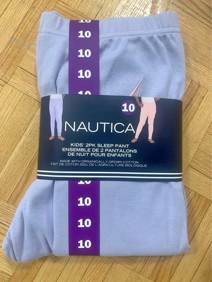 Brand new Nautica kids' sleep pants. Perfect for a comfy night's sleep! The set includes two pairs of pants in light purple and light pink. They are made with organically grown cotton.