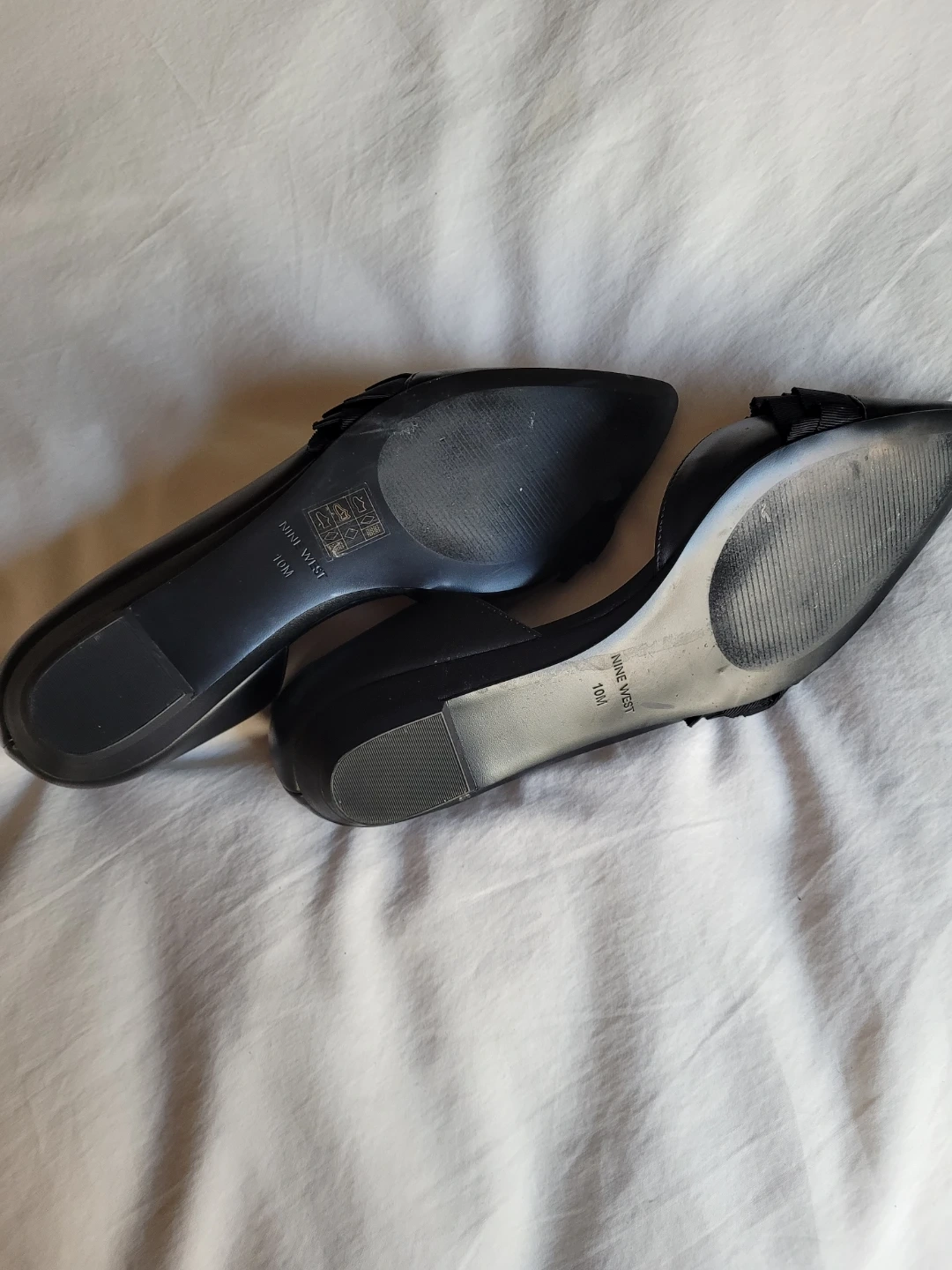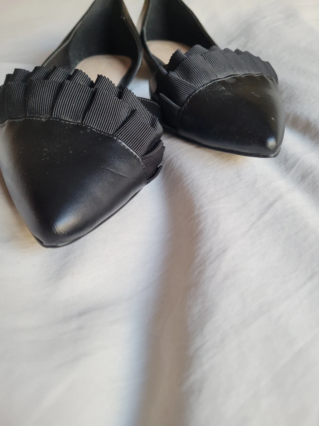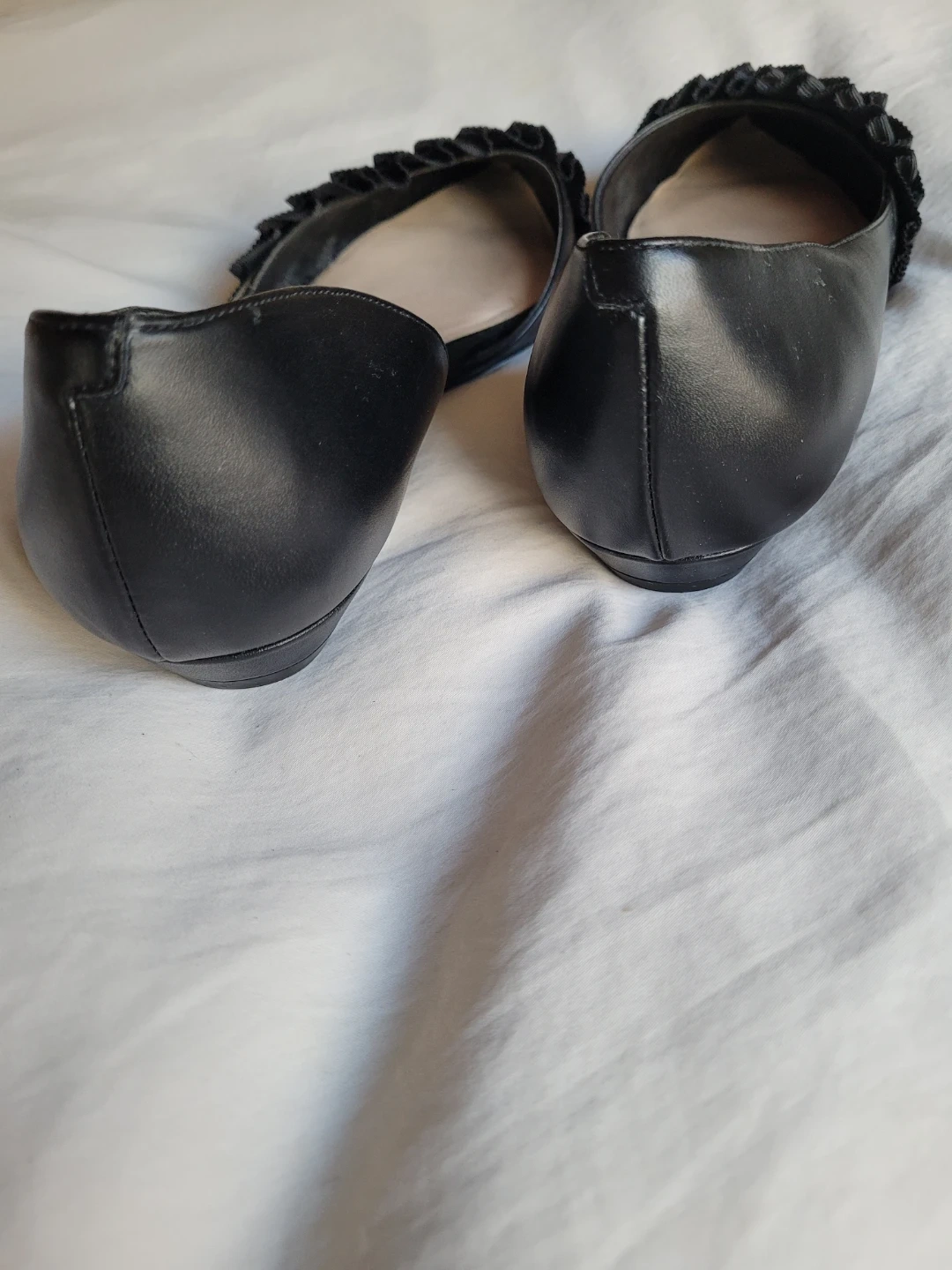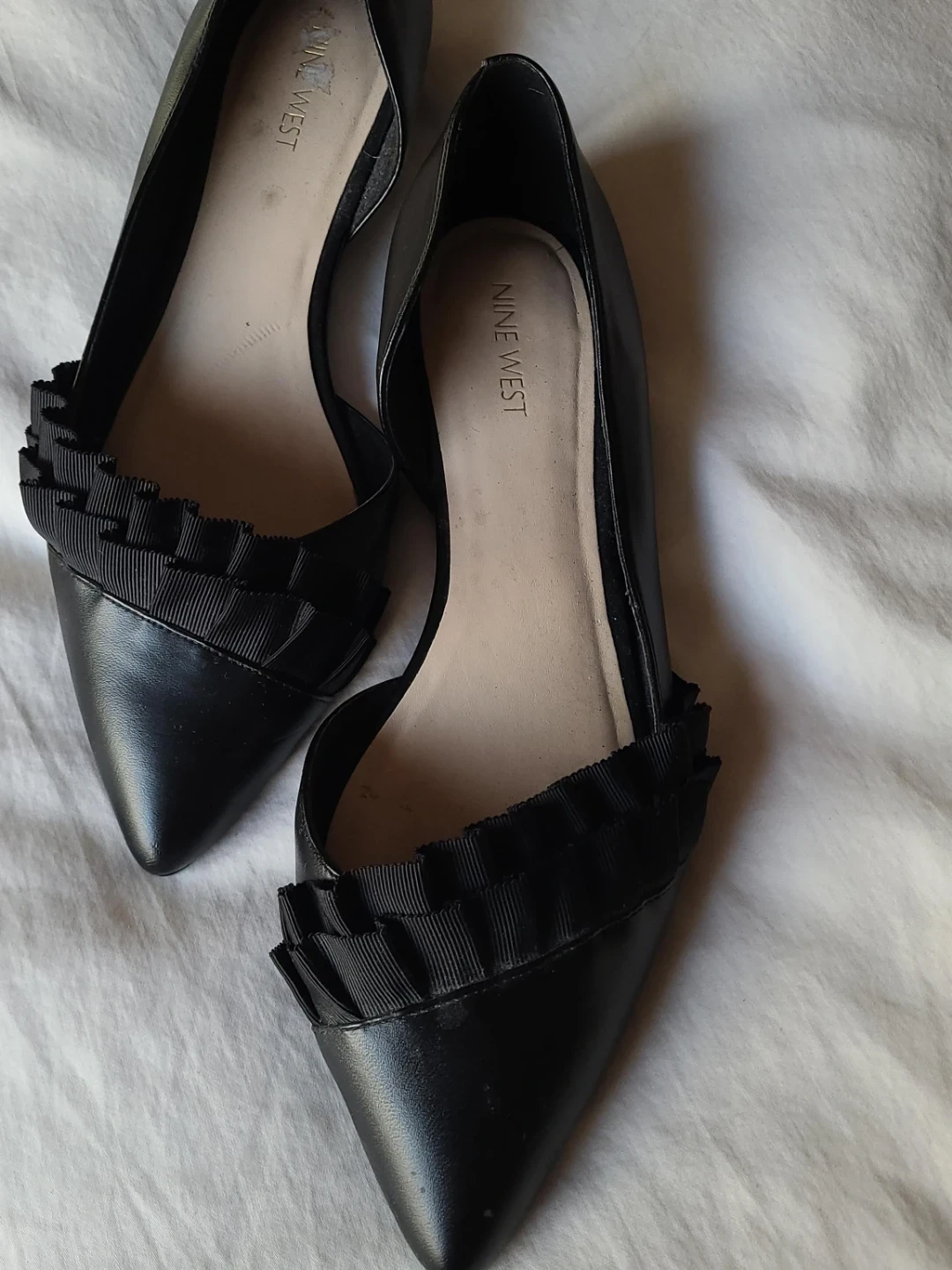 🏆Nine West Black Ruffle Pointed Toe Flats - Size 10M 🏆