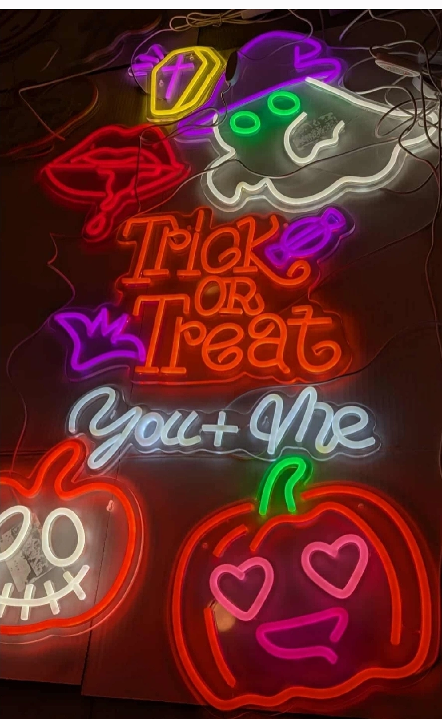 Get ready for Halloween with these fun neon light signs! Includes a variety of spooky and cute designs like pumpkins, ghosts, and a 'Trick or Treat' sign. Perfect for adding a festive touch to your home or party.
