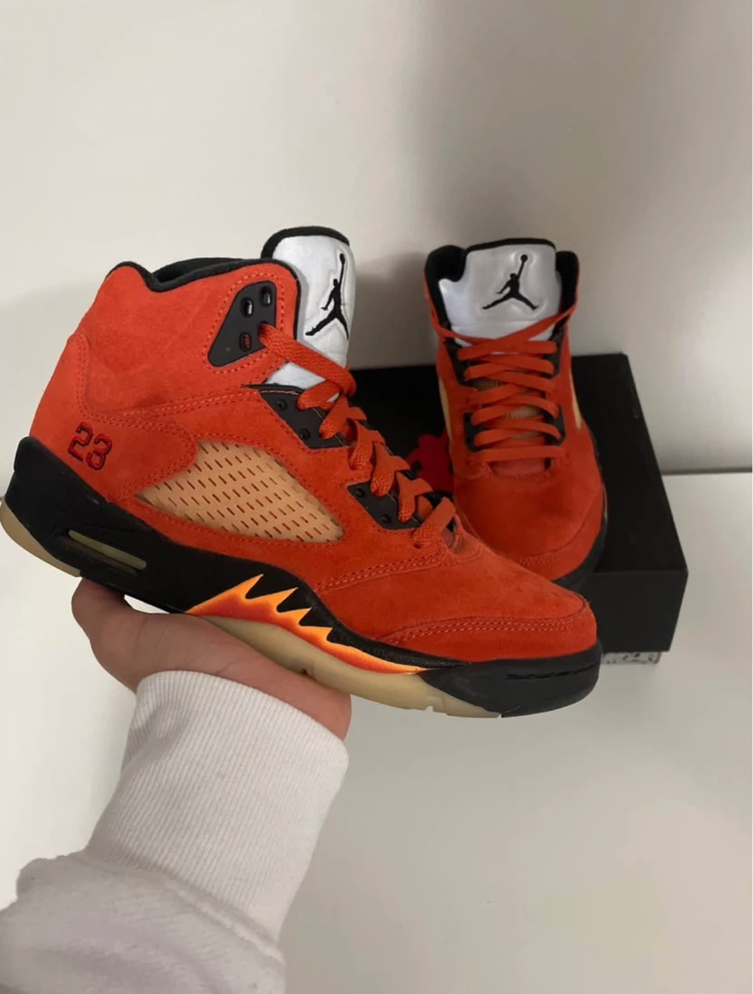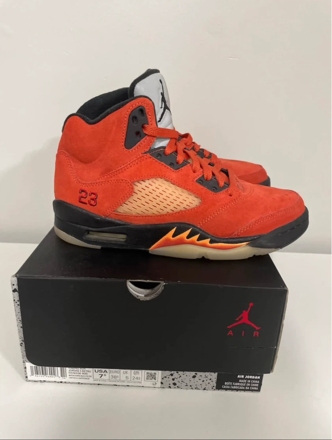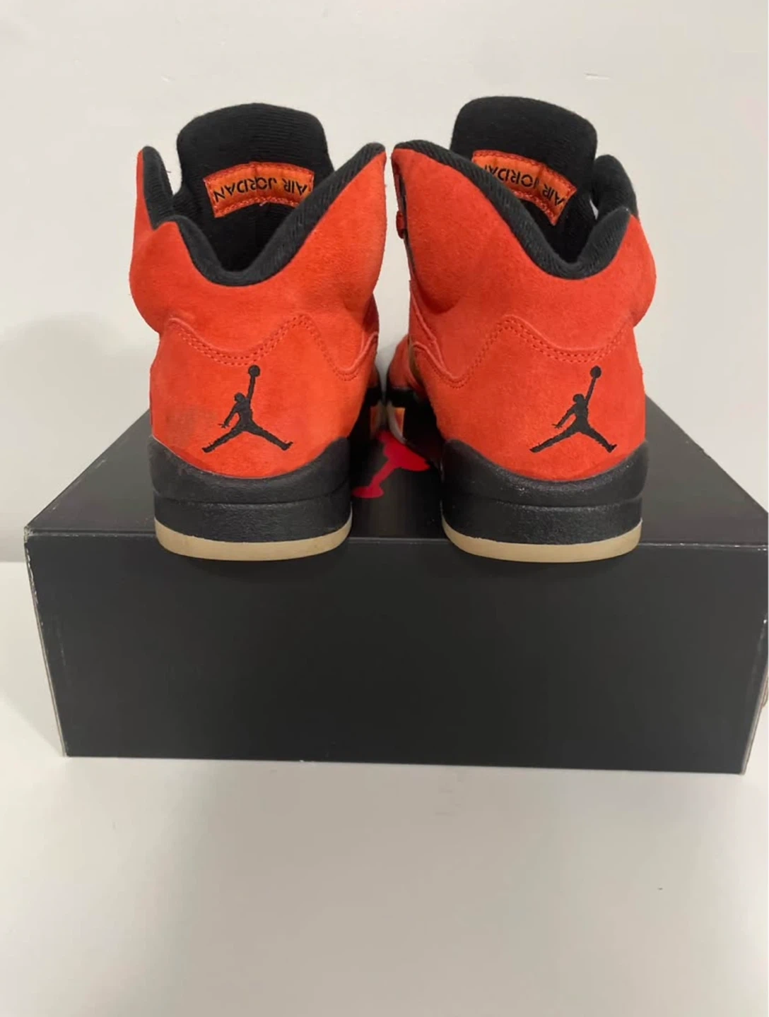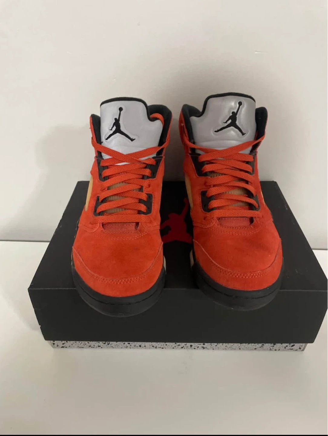 Selling my Jordan 5s size 7.5US because they don’t fit me anymore, one of the shoe has 2 small drops of water but barely noticeable, the bottom of both shoes are good just slightly bit of dirt overall in great condition and I only wore them 5 times👟 They are real✅ They come with the box✅ Price as is
