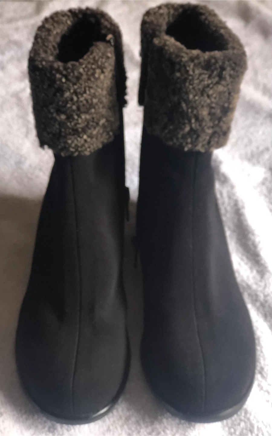 Zip closure. Low heel.