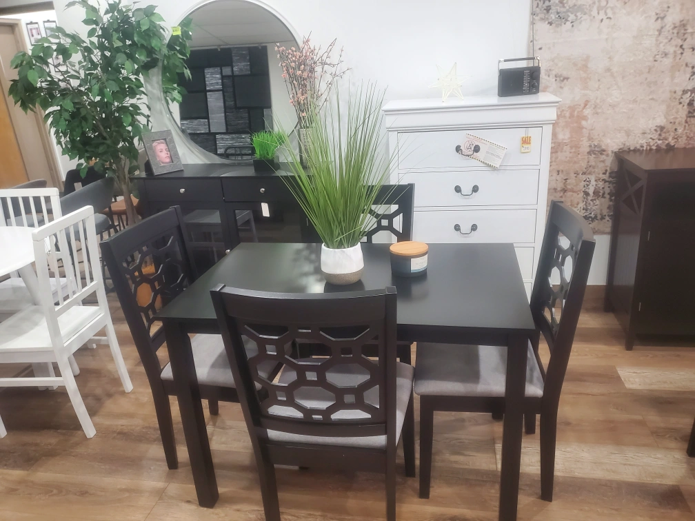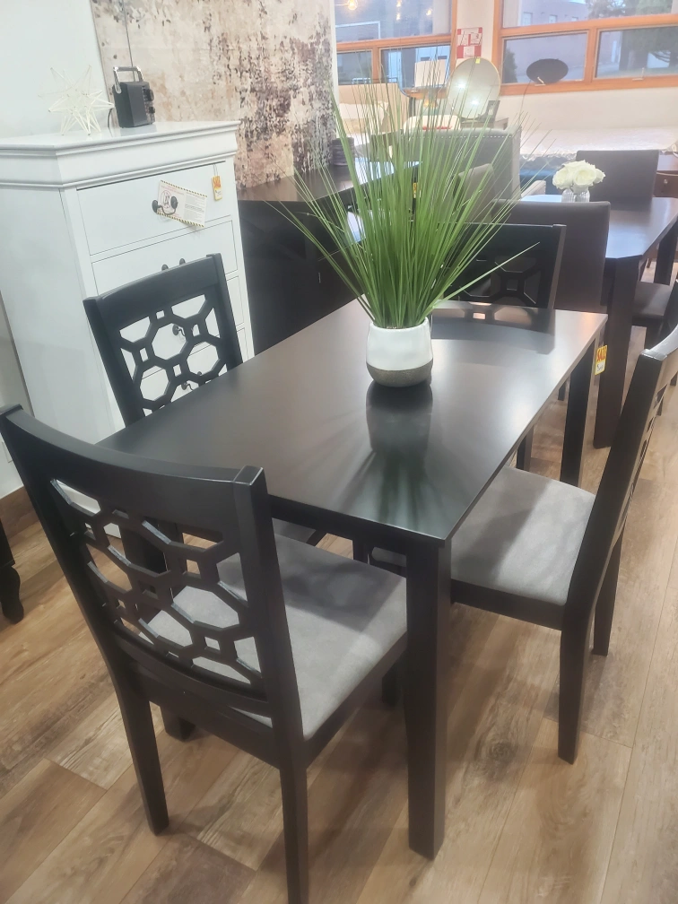 Black Dining Chair with Grey Upholstered Seat