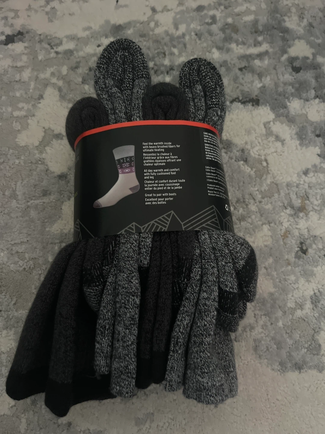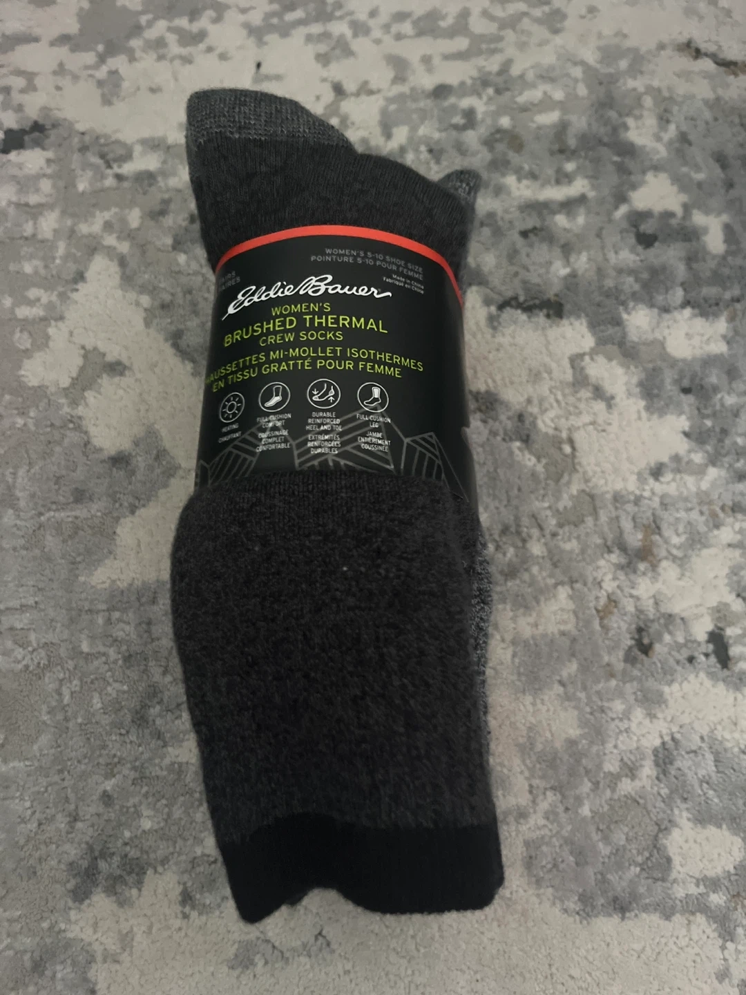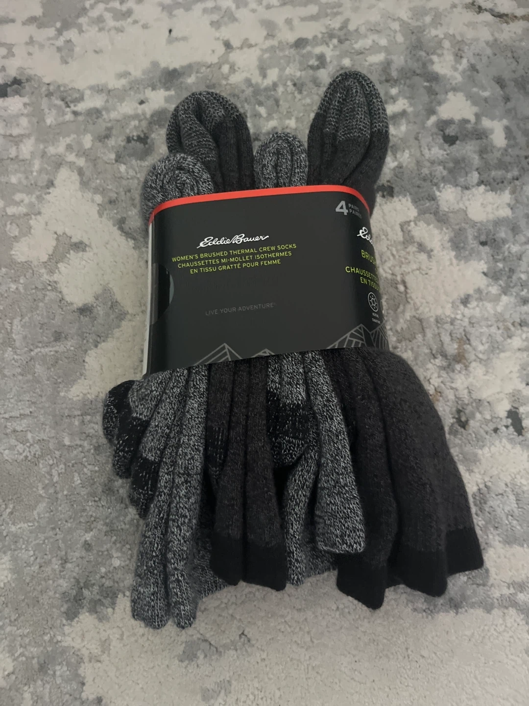 This is a 4-pack of Eddie Bauer women's brushed thermal crew socks. They are designed for warmth and comfort with heavy brushed fibers inside. These socks are great for pairing with boots.