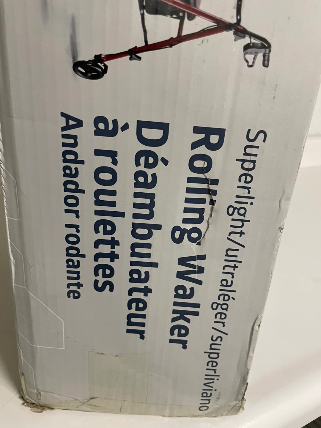 This is a Medline Guardian rolling walker. It's superlight and ultralight. The walker is red. It has wheels and a seat.