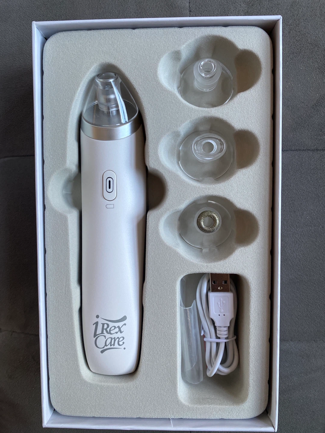 Selling a brand new iRex Care Blackhead Vacuum Removal Device, model QY202! It comes in its original box and includes all the original components: the device itself, various suction heads, a user manual, and a USB charging cable. It's a great way to keep your skin looking its best!