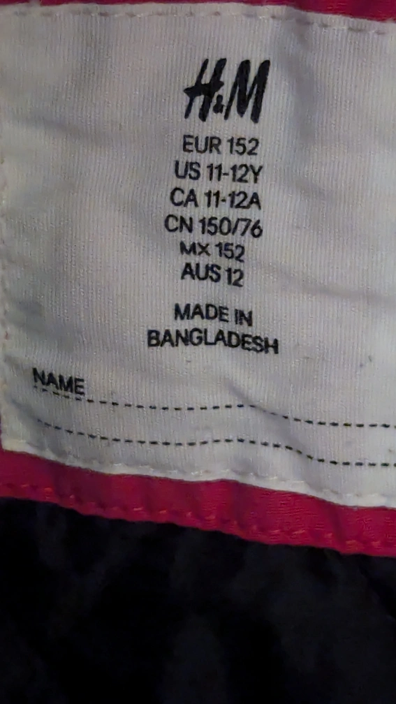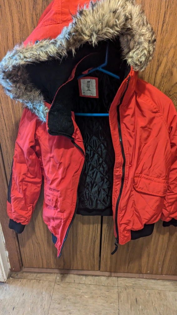 I'm selling a red winter jacket from H&M. It's in great condition and perfect for keeping your child warm during the colder months. The size is US 11-12Y.