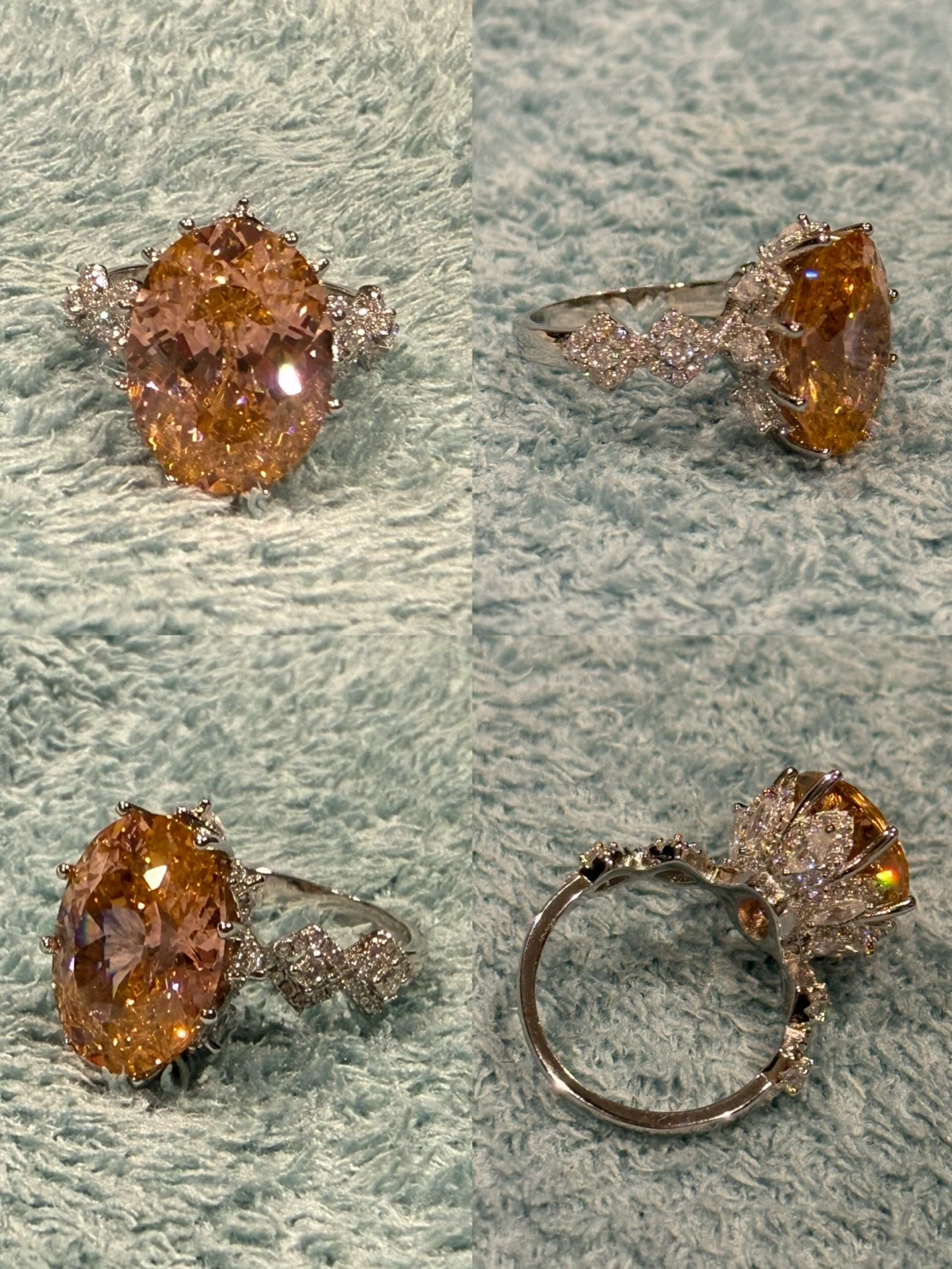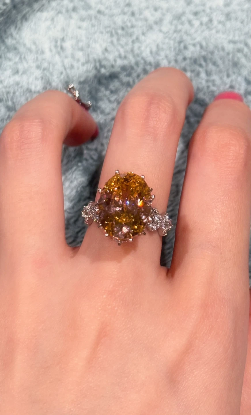 Huge Canary Yellow Oval Cocktail Ring – Sparkly Statement Ring