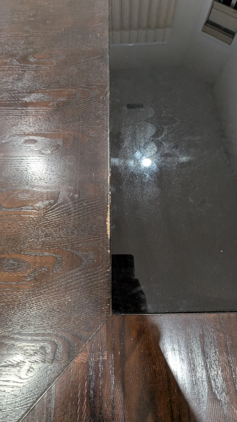 Dark Wood Dining Table with Black Glass Inlay