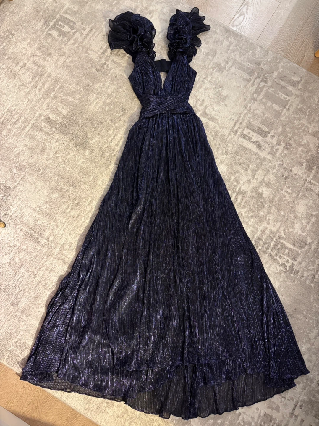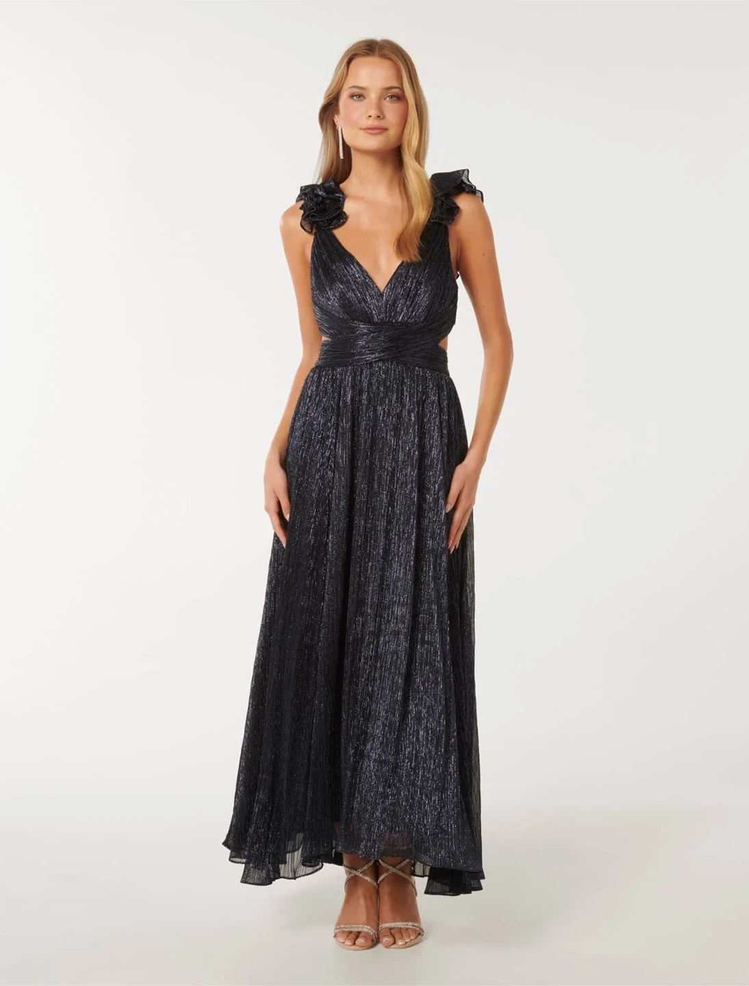 Selena Plisse Ruffle Shoulder Maxi