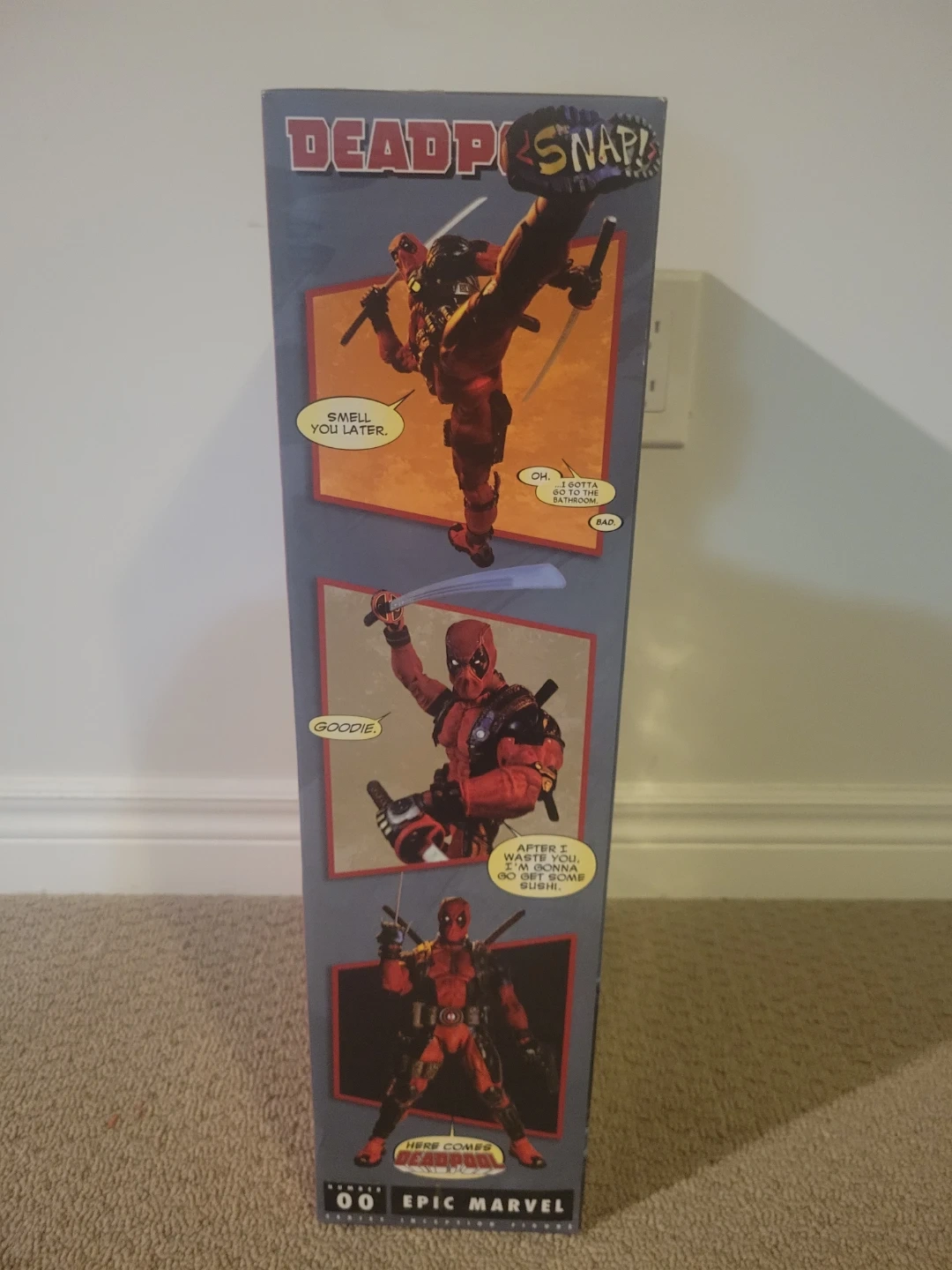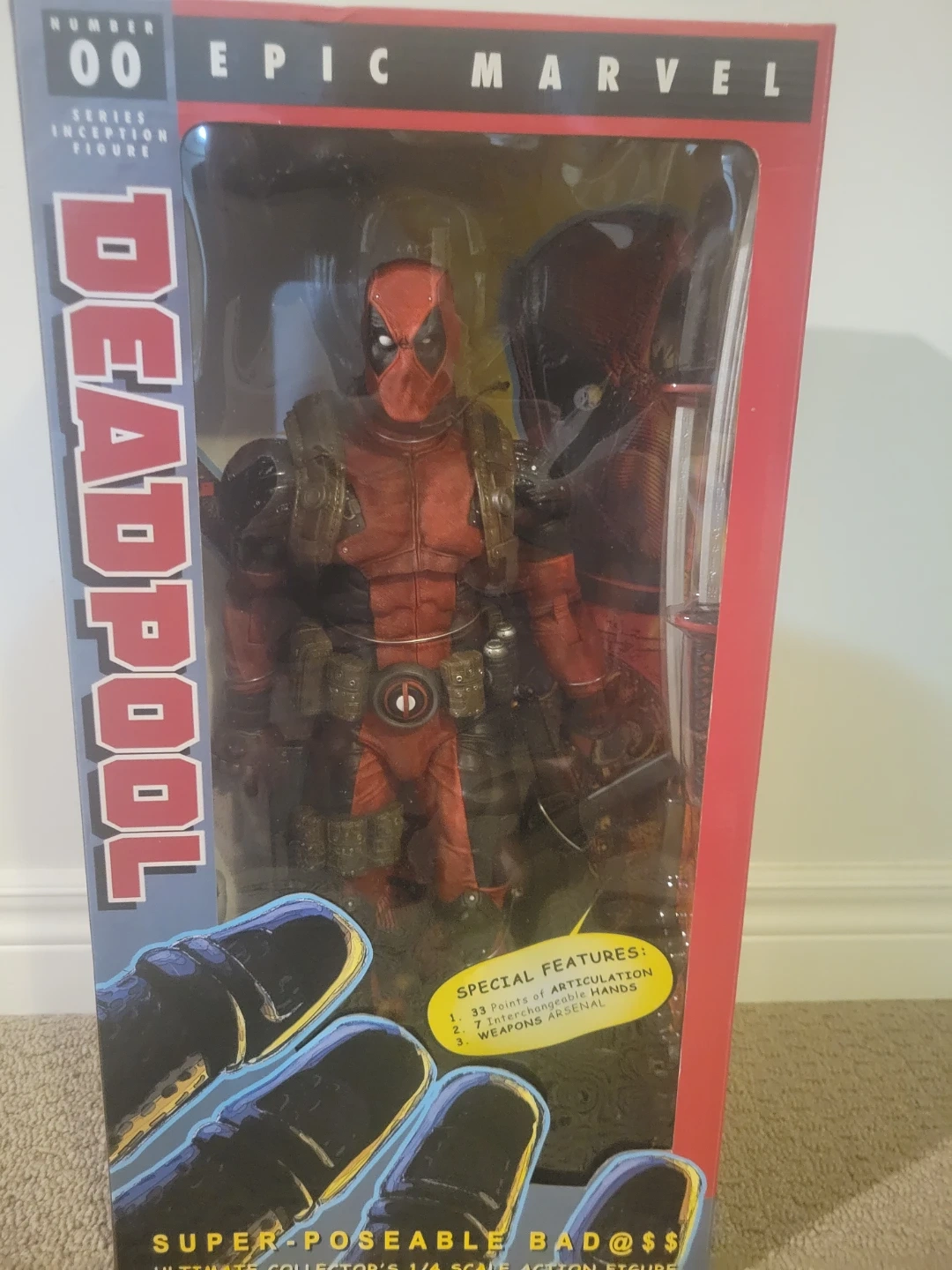 Super-poseable Deadpool Ultimate Collector's 1/4 scale action figure! It features 33 points of articulation, 7 interchangeable hands, and a weapons arsenal. This figure's high level of detail makes it a great collectible for any fan.