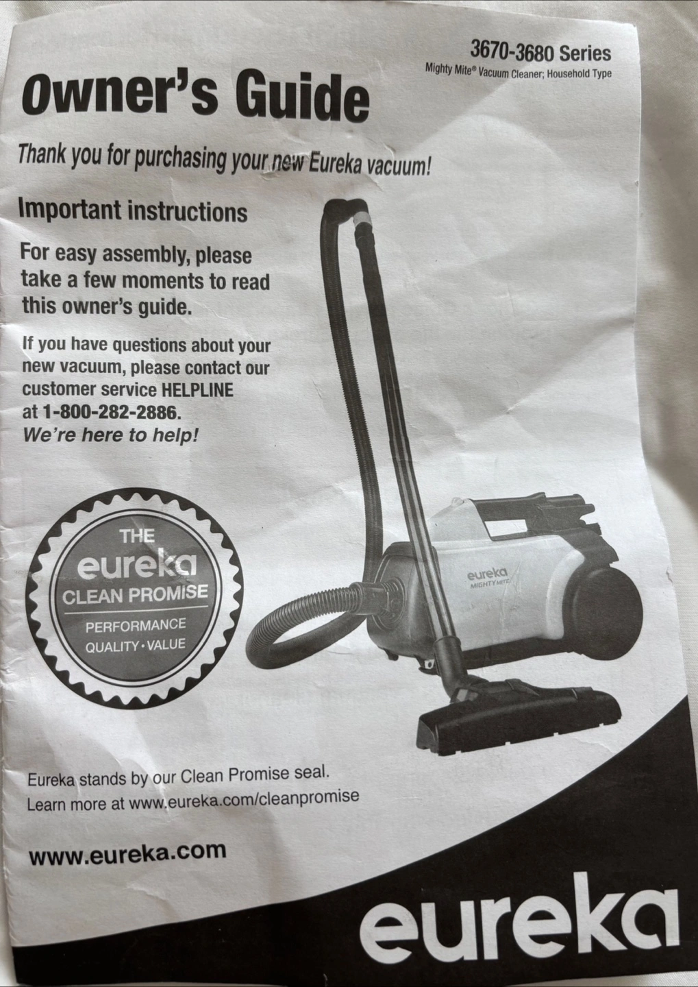Selling a Eureka Mighty Mite vacuum cleaner. It's in good working condition and ready to help keep your space clean. The owner's guide is included!