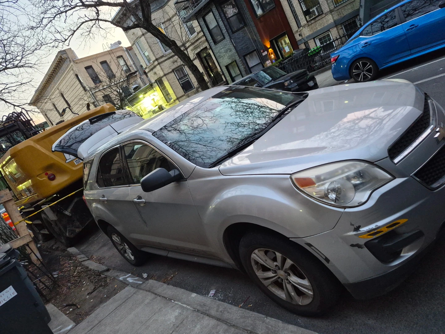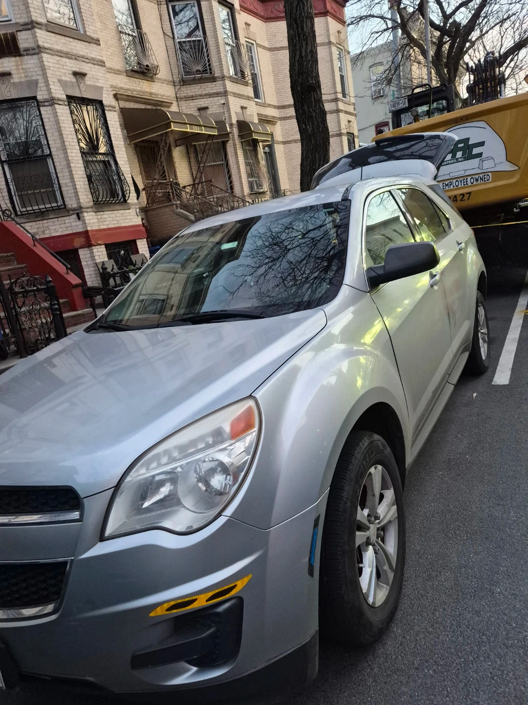 Silver 2015 Chevrolet Equinox LT SUV with 150,812 miles. It features a leather steering wheel cover and custom seat covers. This SUV is ready for its next owner!