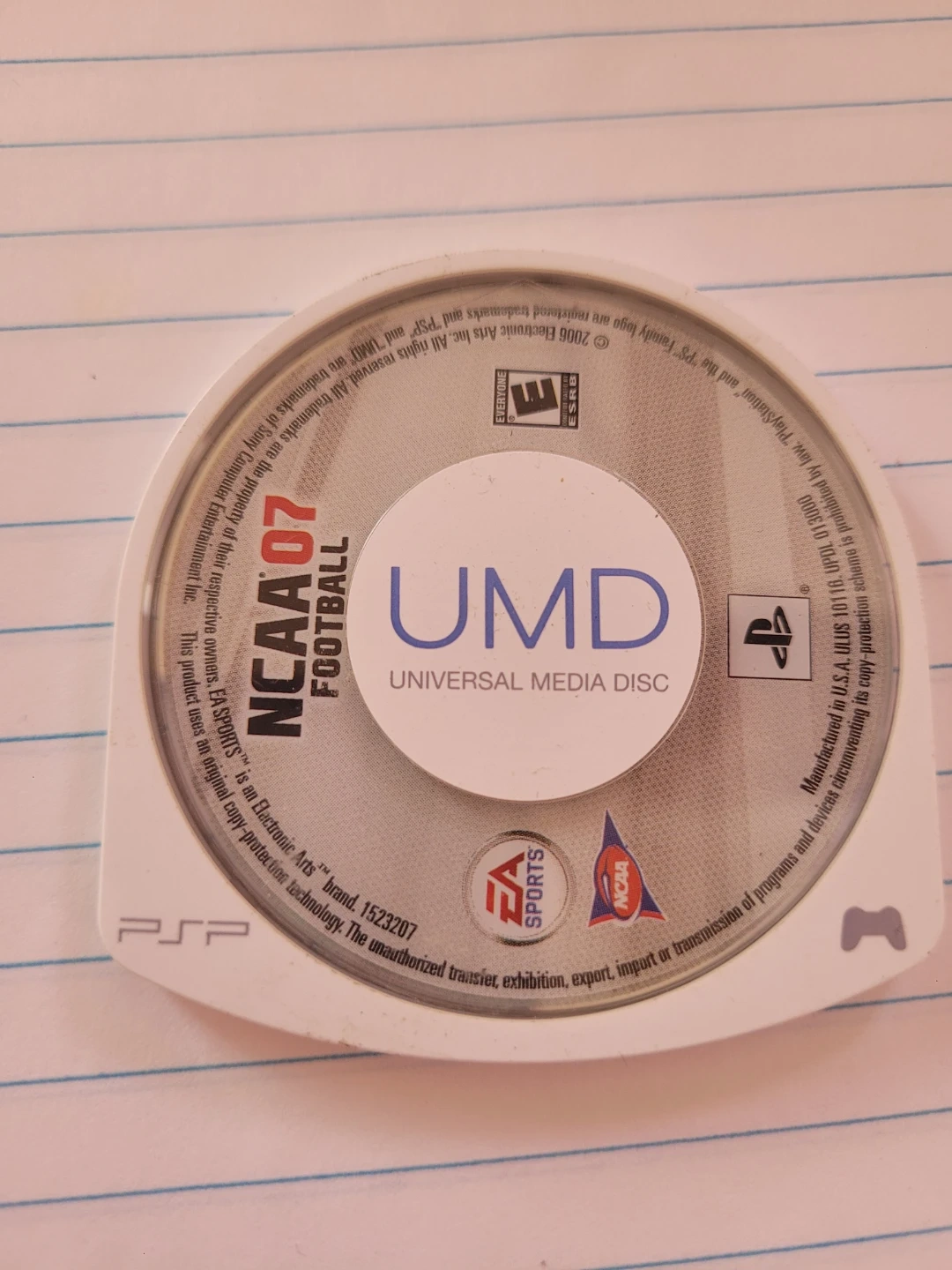 This is the NCAA 07 Football UMD for PSP. It's a universal media disc for the PlayStation Portable. Made by Electronic Arts.