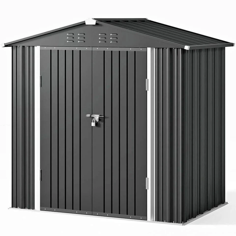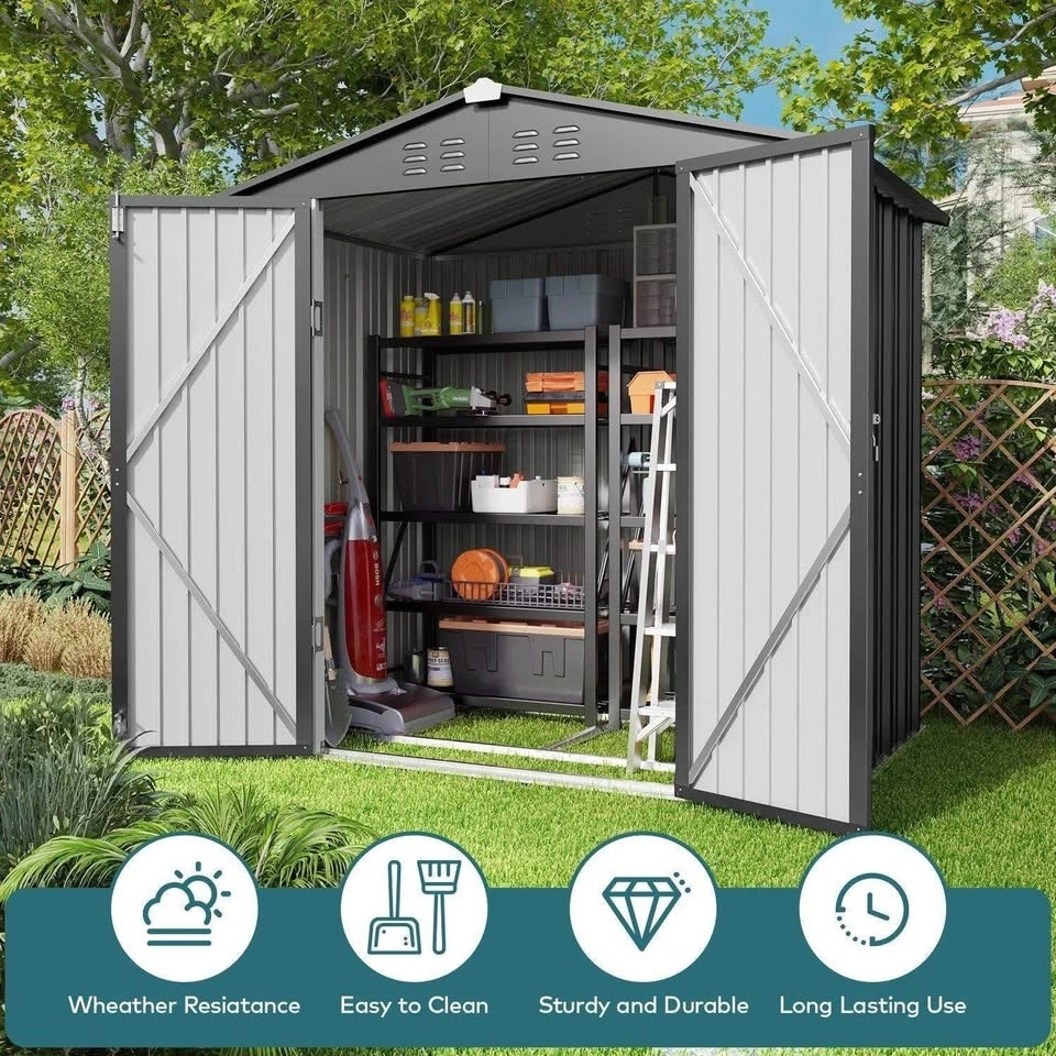 This large-capacity metal shed has multiple uses. It can store most of the outdoor tools you would normally use, such as lawn mower, bikes, toolboxes, etc. If you have pets, it can also be used as a pet house to keep out the wind and rain and provide enough warmth. You can also use it as a garbage room to keep your yard clean and tidy. The sloped roof design adds extra storage space while preventing rain or snow from accumulating and causing damage to the material surface or rusting, and four vents increase air flow. Door locks keep your belongings secure while preventing other small animals from accidentally entering. The sturdy frame structure can provide enough stability to the shed, and the galvanized sheet material is rust and UV resistant with a long service life. Each panel is closely connected, and has good weather resistance. Please install the plastic protection sleeves we provide on the sharp corners and all exposed screws to keep you safe during installation and use! This product has detailed instructions and an installation video to help you complete the installation efficiently. Due to the large size and metal material, it is recommended to be installed by 2-3 people at the same time.