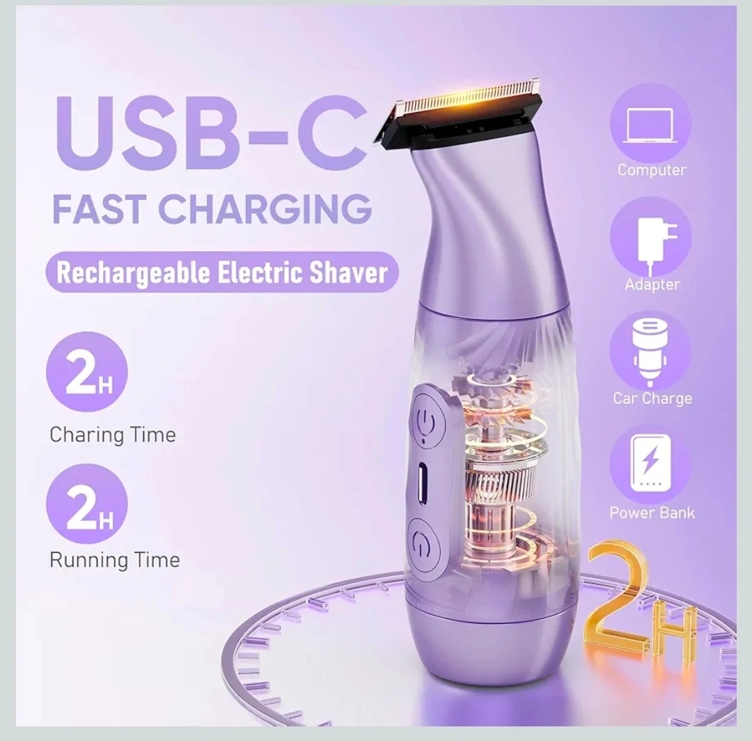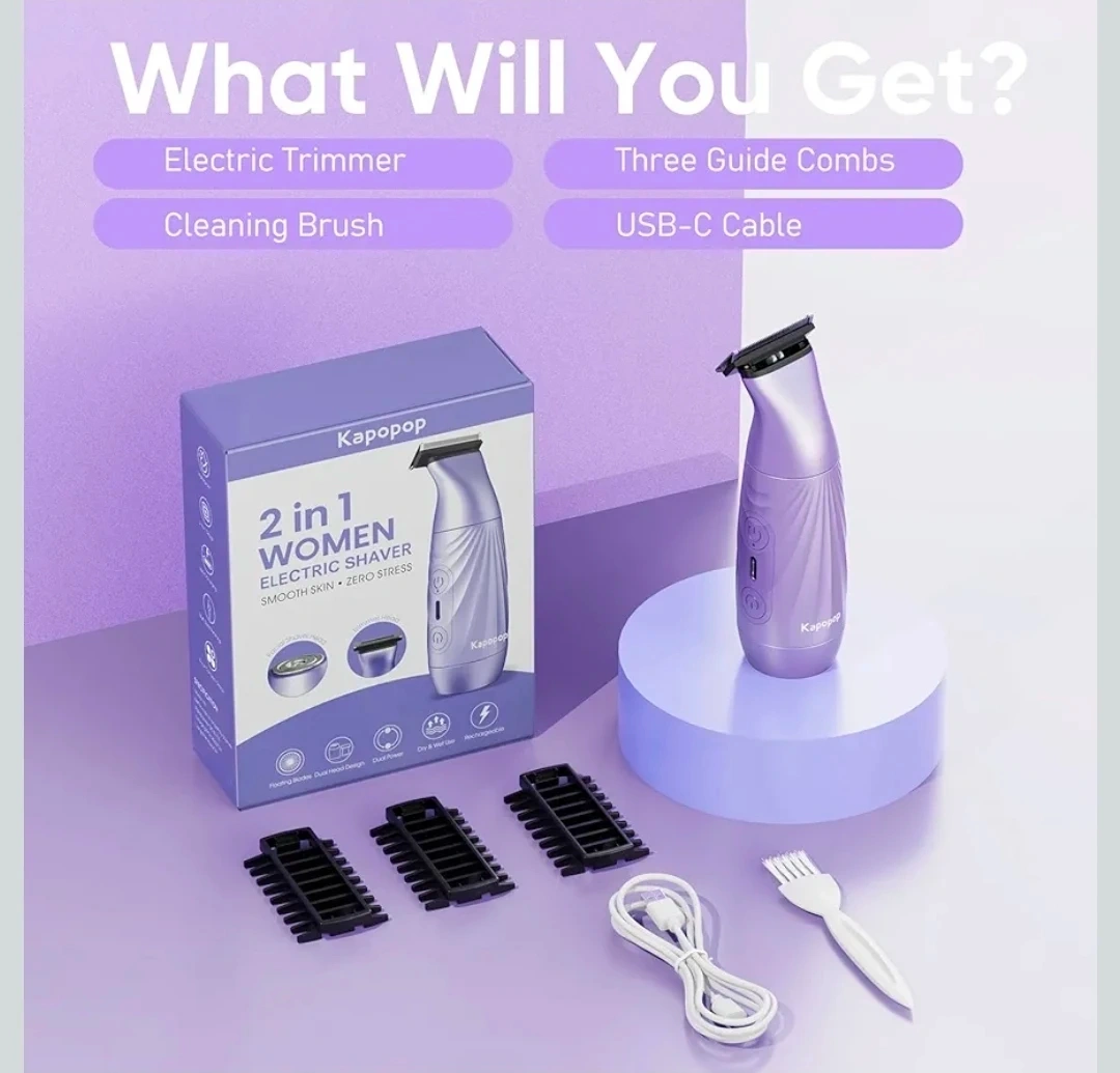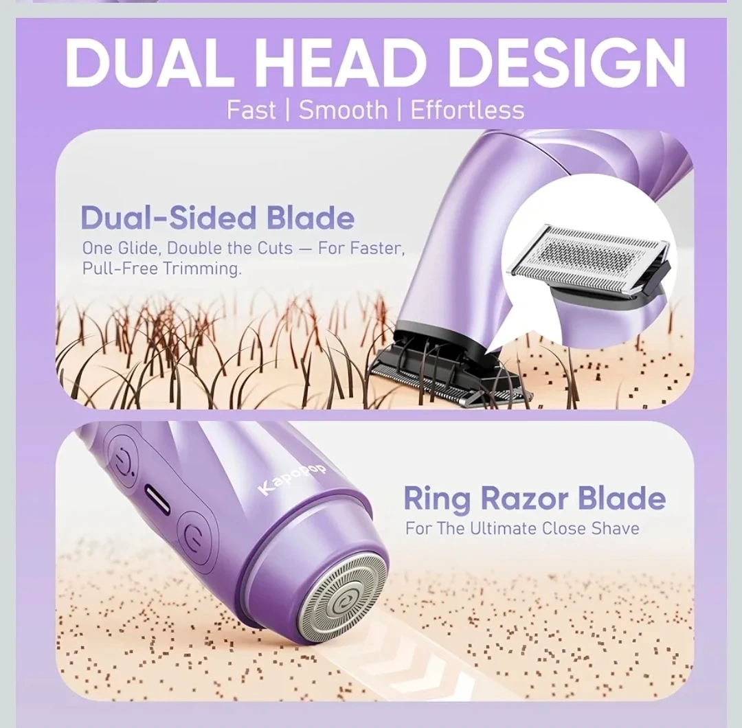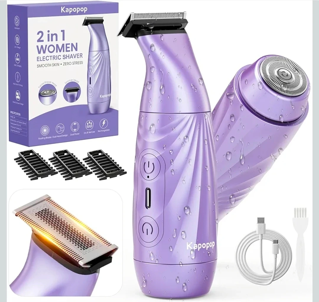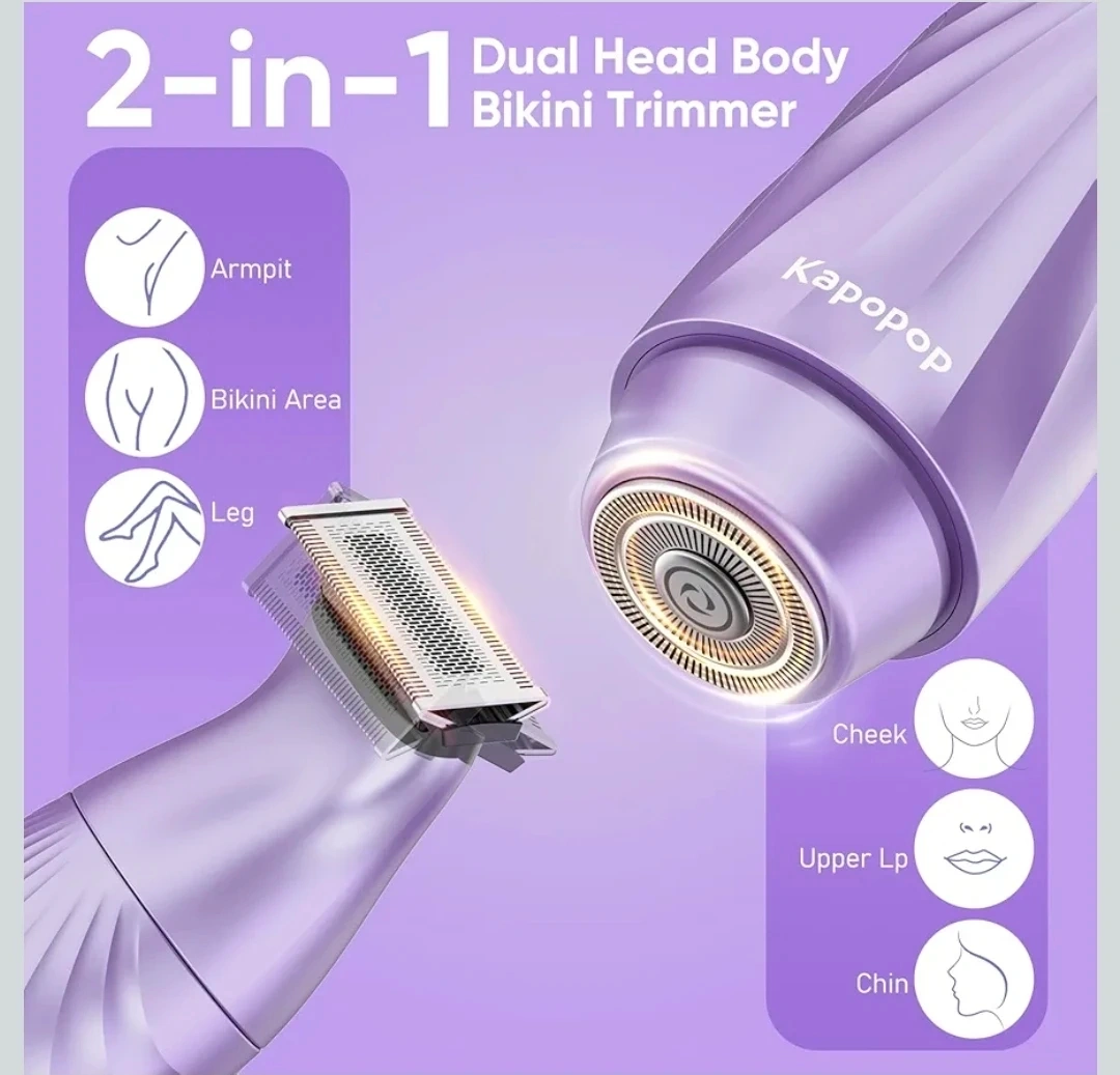 2-in-1 Bikini Trimmer for Women,Electric Shaver & Razor with Dual Heads for Body Pubic Underarm & Facial Hair,IPX7 Waterproof Wet & Dry,Rechargeable Cordless Lady Trimmer