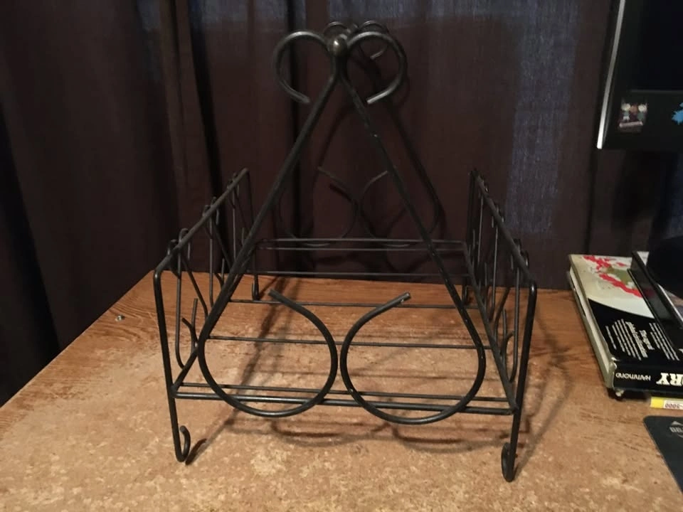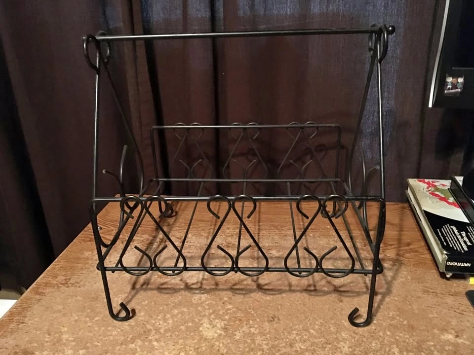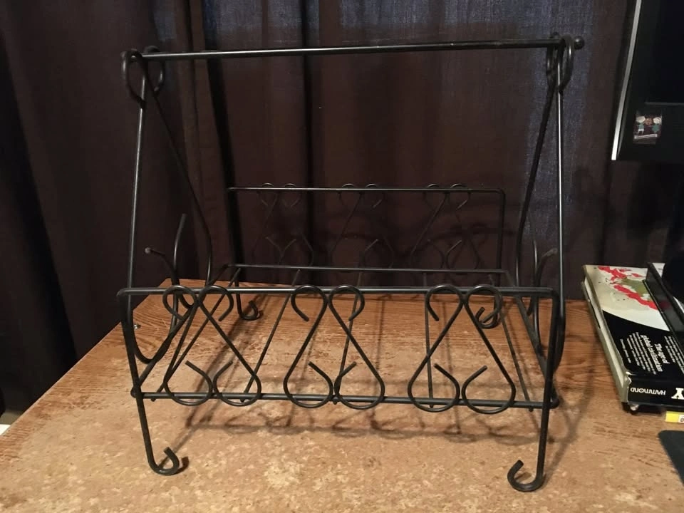 Vintage Black Wrought Iron Mid Century Magazine Rack