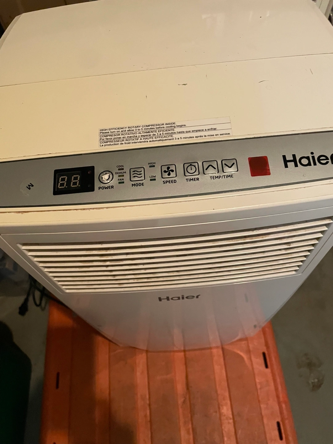 15Selling a Haier portable air conditioner. It's perfect for cooling down a room quickly and efficiently. It features multiple modes, including cool, dehumidify, and fan, so you can customize your comfort. The timer function is also great for setting it to turn on or off automatically. Get ready for summer with this handy AC unit! Dehumidifier as well !