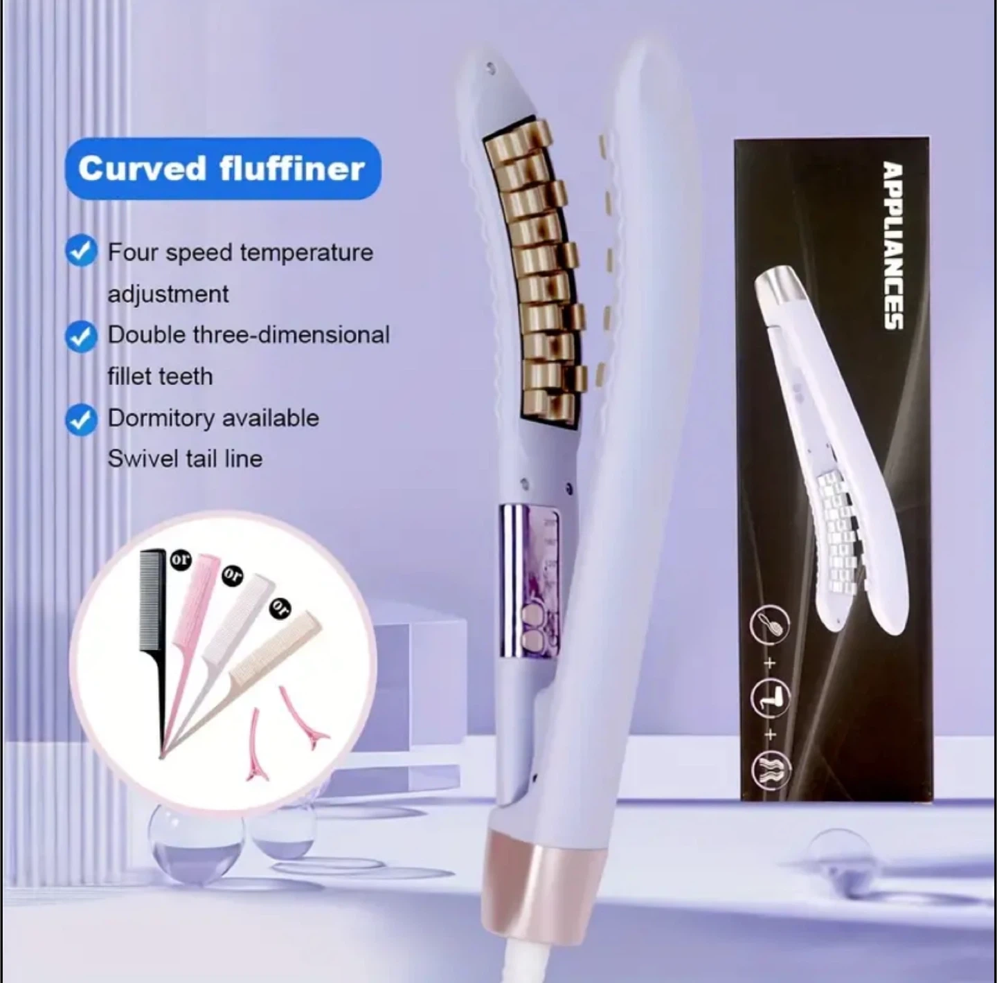 Pea Corn Curling Iron with Volumizing Roots & High Crown Top - Automatic Shut-Off, Anti-Scald, 110-240V US Plug, 59.06-98.43inch Cord, Ergonomic Handle for Dry Hair
