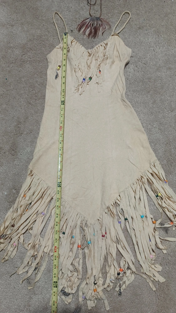 Fun sexy American Indian buckskin dress with fringe & feathers with a feathers for necklace. Have several Halloween costumes check out my other items for sale Pick up in Woodridge