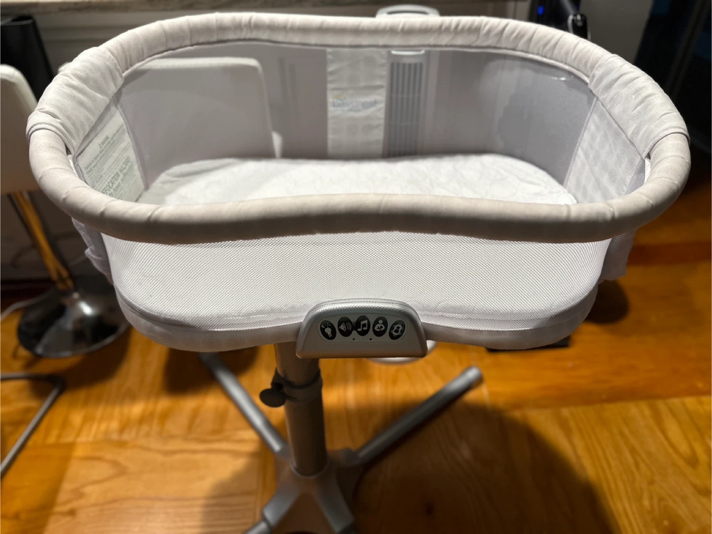 Selling a Halo Bassinest Swivel Sleeper in great condition! It's perfect for keeping your little one close by during those early months. This bassinet swivels 360 degrees, making it easy to reach your baby from bed. It also features soothing sounds, vibration, and a nightlight to help your baby sleep soundly. It comes with two mattresses!