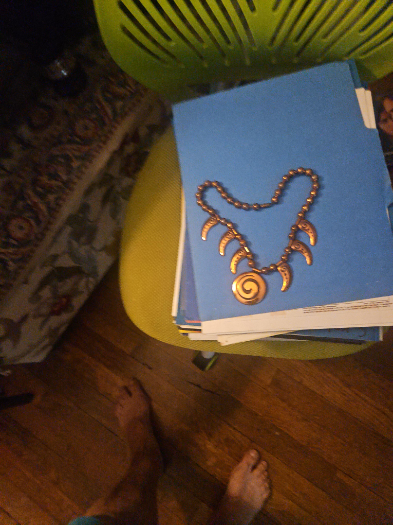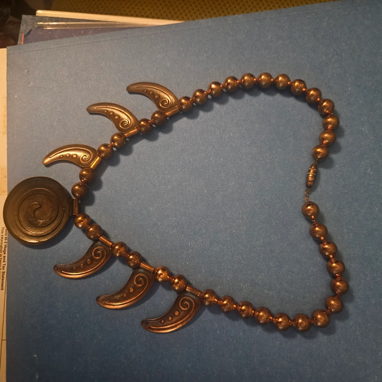 swirl pendant boho ethnic with copper beads very good condition 18".Rare