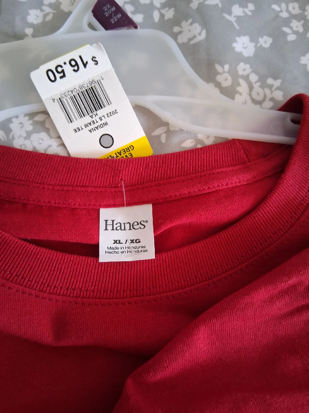 Hanes Indiana Hoosiers long sleeve team tee in red. Available in sizes S/CH, L/G, XL/XG, and 2XL/2XW. Originally bought for $16.50