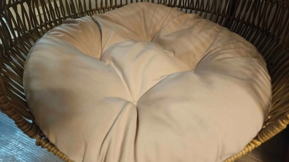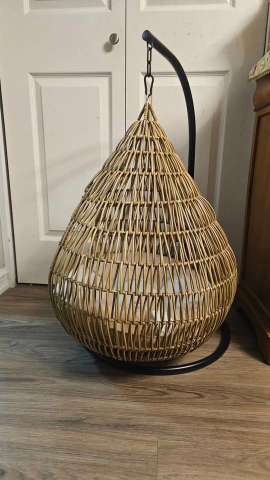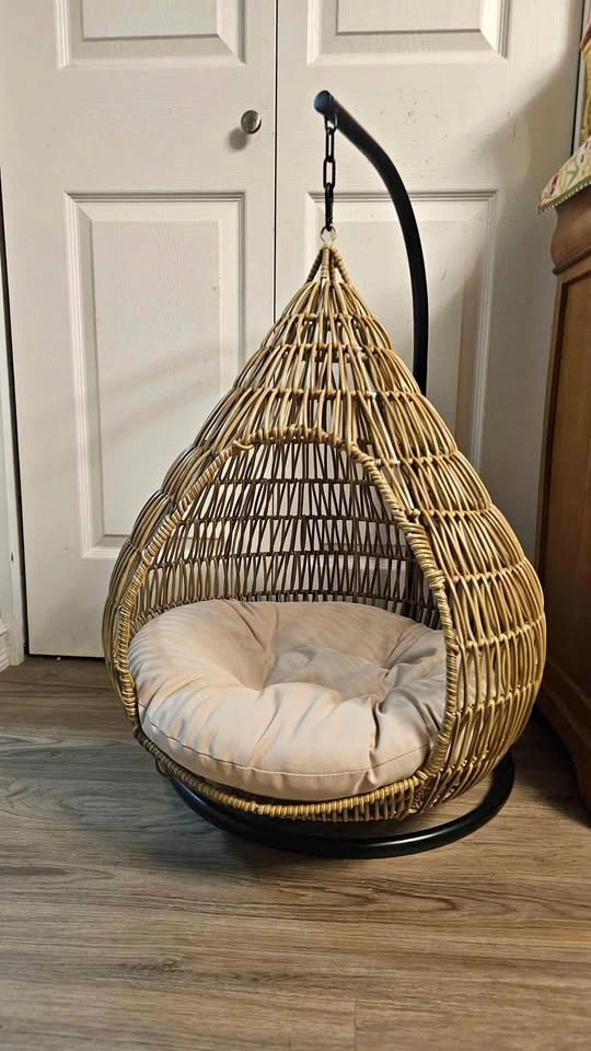 65This hanging cat bed has no sign of wear or tear. It's roughly 32" tall hangs about 4" off the ground. Have your loved ones curl up in this thing and take a nap.