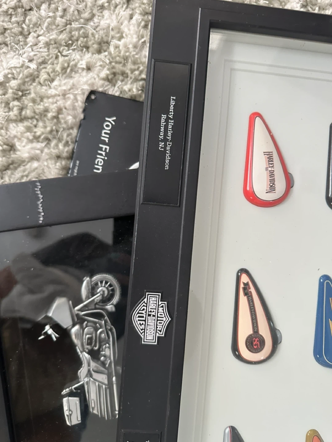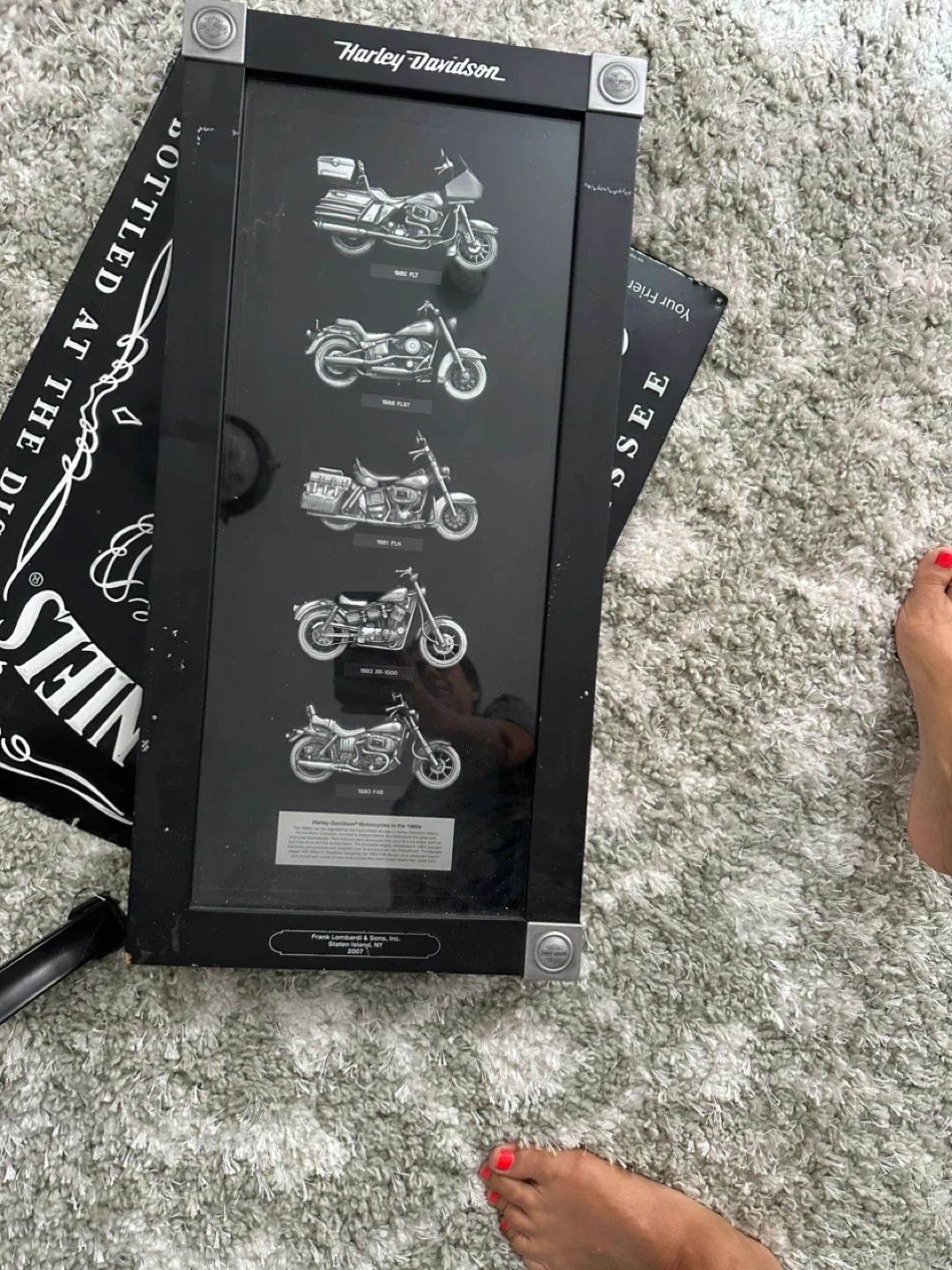 Harley-Davidson framed motorcycle art featuring different models through the years. Great for any Harley enthusiast! Shadowbox