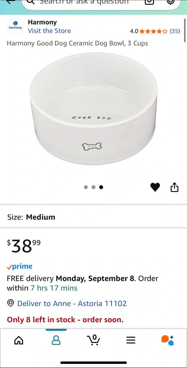 Like-new. Used for a few weeks, but ended up getting a different style bowl. Retails for $39+tax. 3 cup/24 oz ceramic bowl - 6” Diameter x 2.6” Height Has “Good Dog" etched inside bowl, and dog bones etched on front and back sides of bowl Safe for fresh and raw food diets Dishwasher and microwave safe (bowl may get hot in microwave) Harmony brand; Made in China Pick up only near Astoria Park, Queens NYC 11102 Only Cash (preferred) or Venmo for payment Check out my other listings!