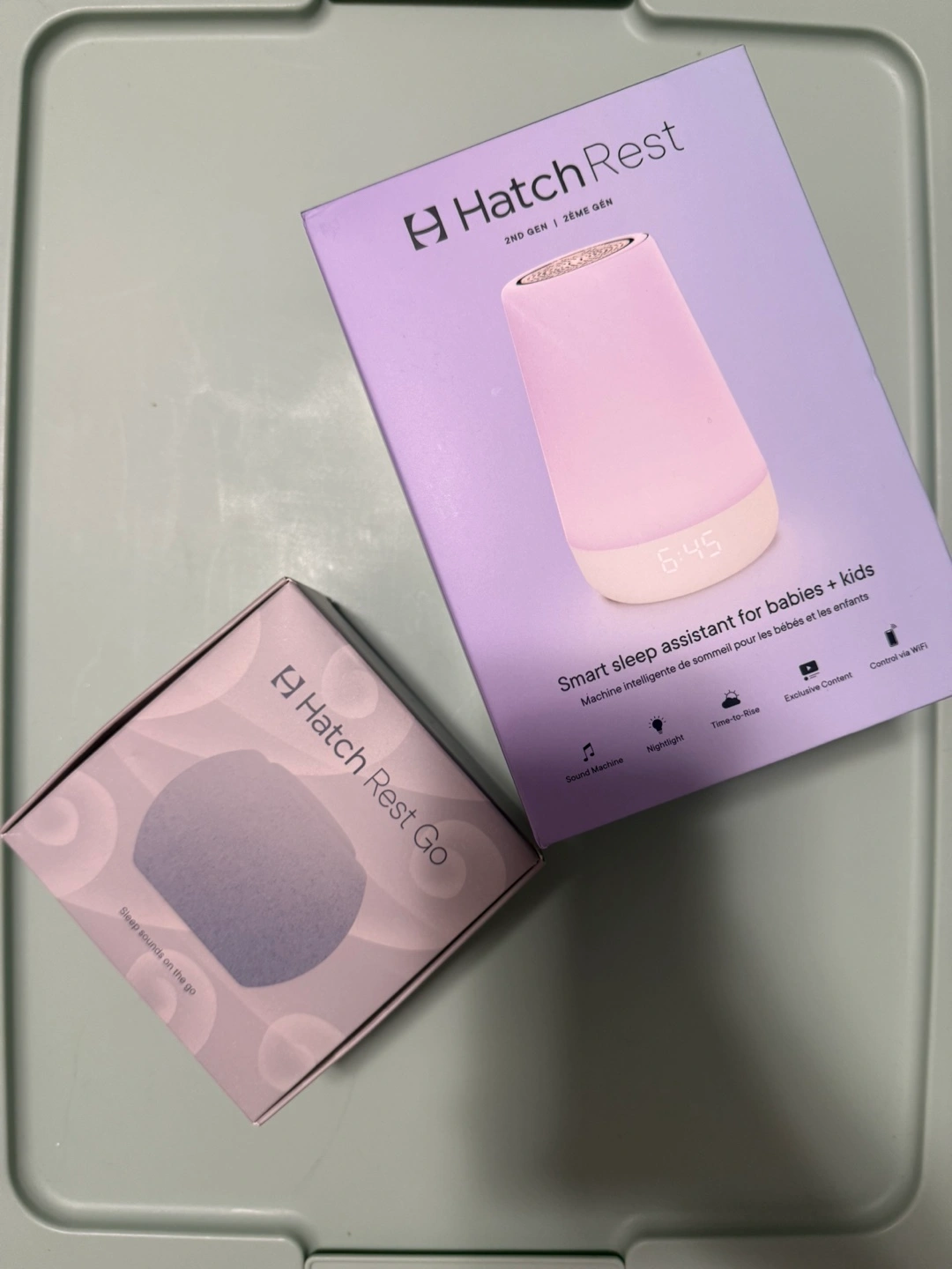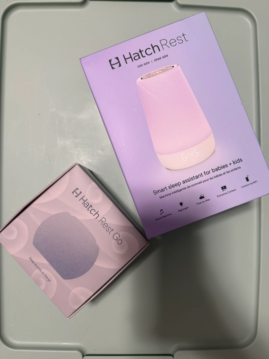10A set including a smart sleep assistant and a smaller portable sound machine, both in boxes. You could use this to bring tranquility to your baby's room.