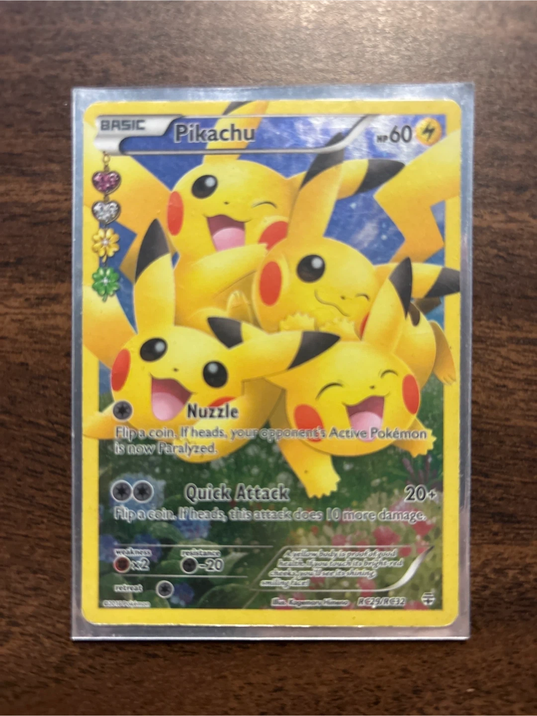 This is a basic Pikachu Pokémon trading card. It features the Nuzzle and Quick Attack moves. The card has 60 HP.