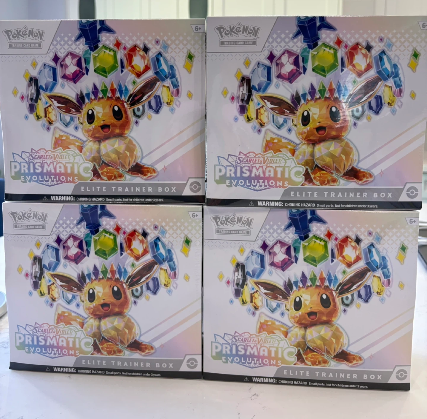 Selling a brand new Pokémon Scarlet & Violet Prismatic Evolutions Elite Trainer Box! perfect for any Pokémon card collector or player. The box is factory sealed and ready for a new home!