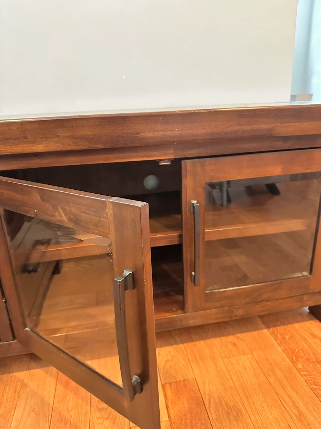 Dark Wood TV Stand with Glass Doors