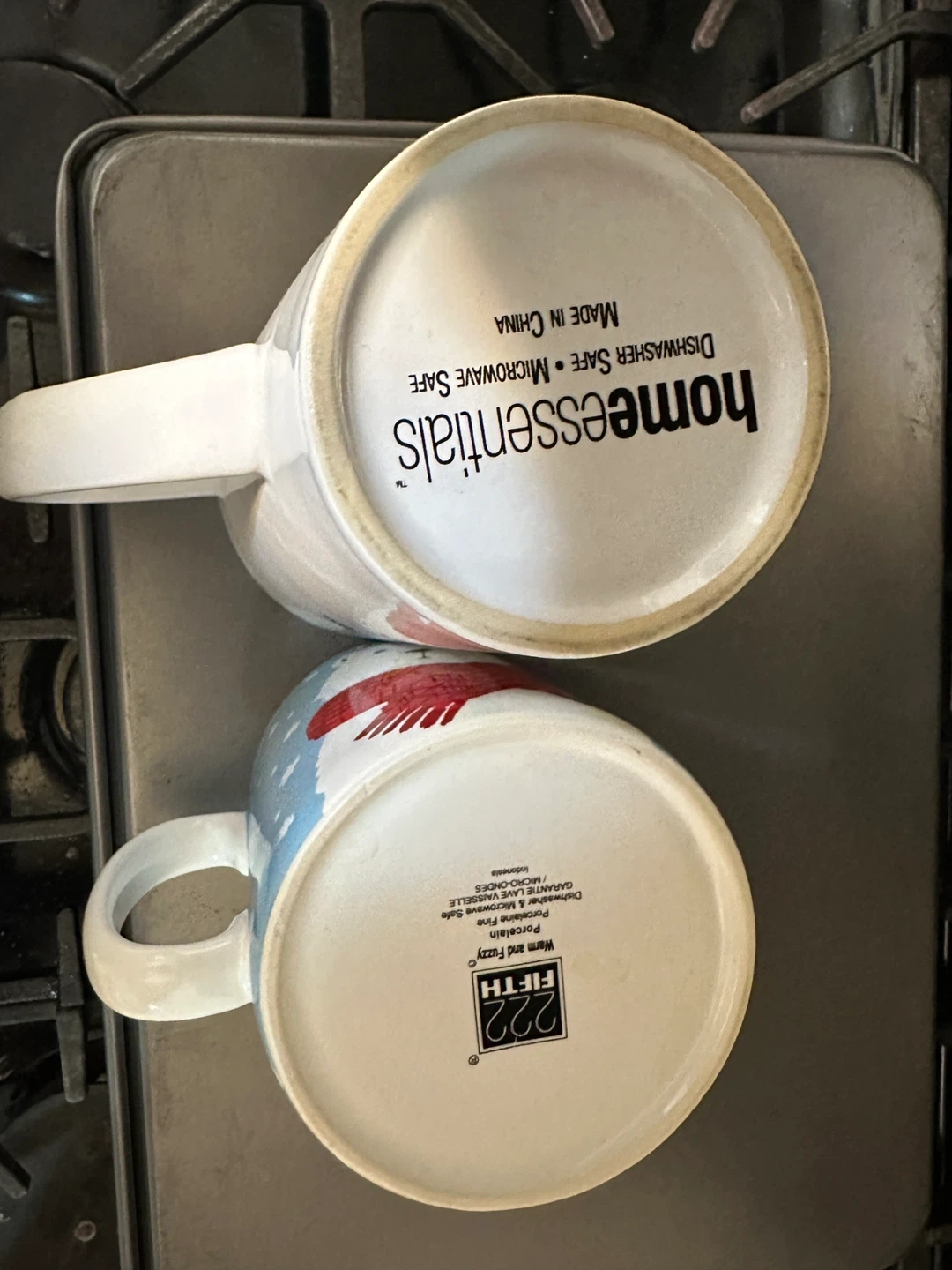 Two mugs for sale! One is from Home Essentials and the other is from 222 Fifth. Both are in good condition and ready for a new home!