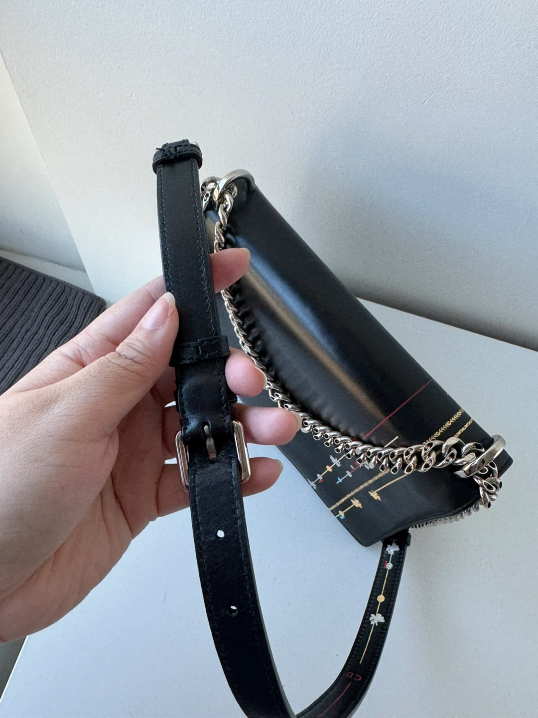 With straps for shoulder or crossbody wear.