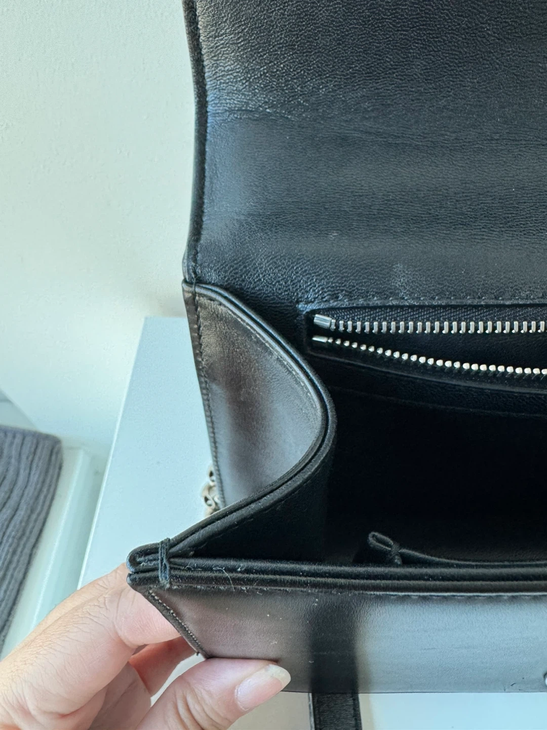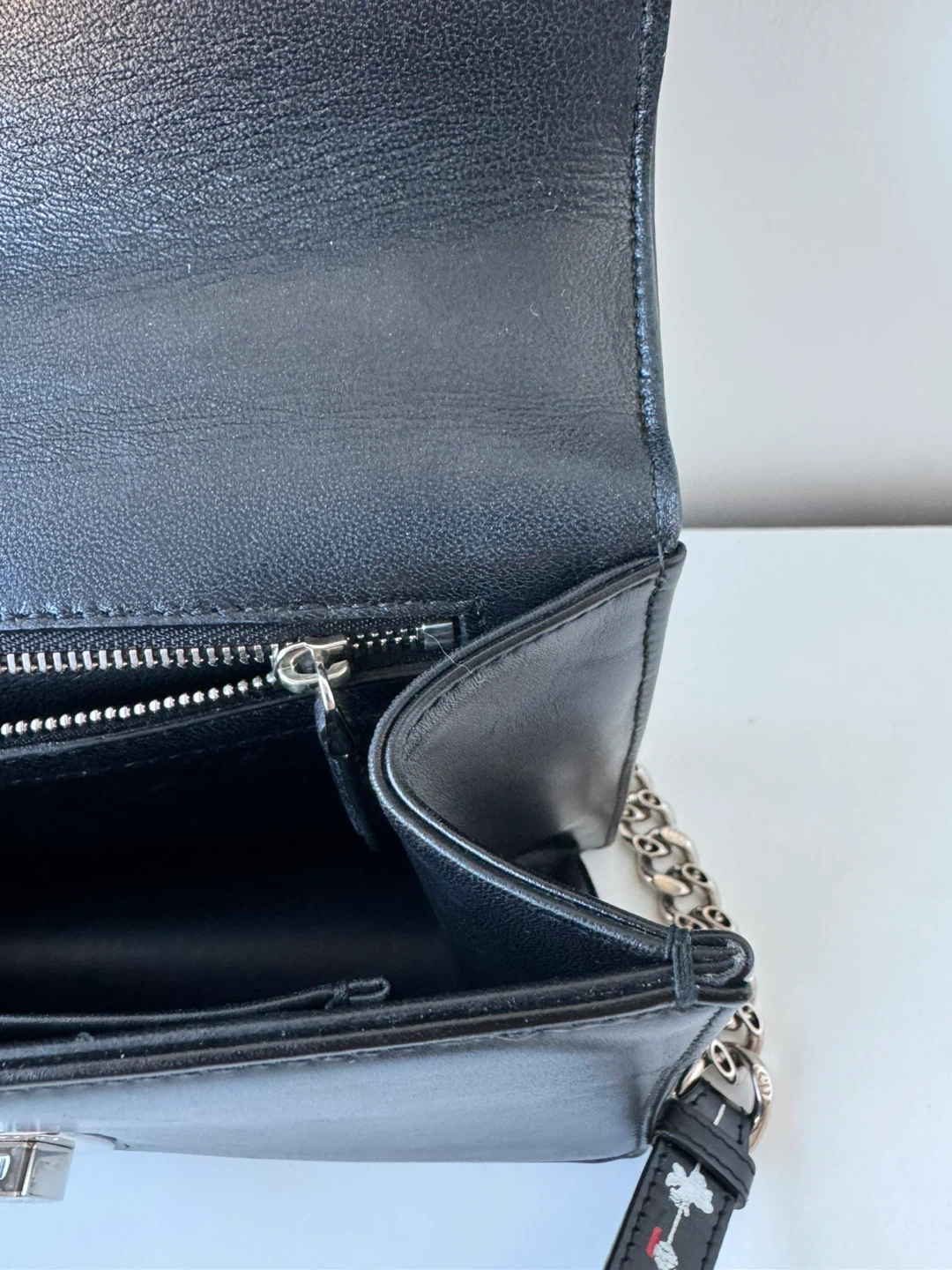 Inside, there is one open and one zipped pocket.