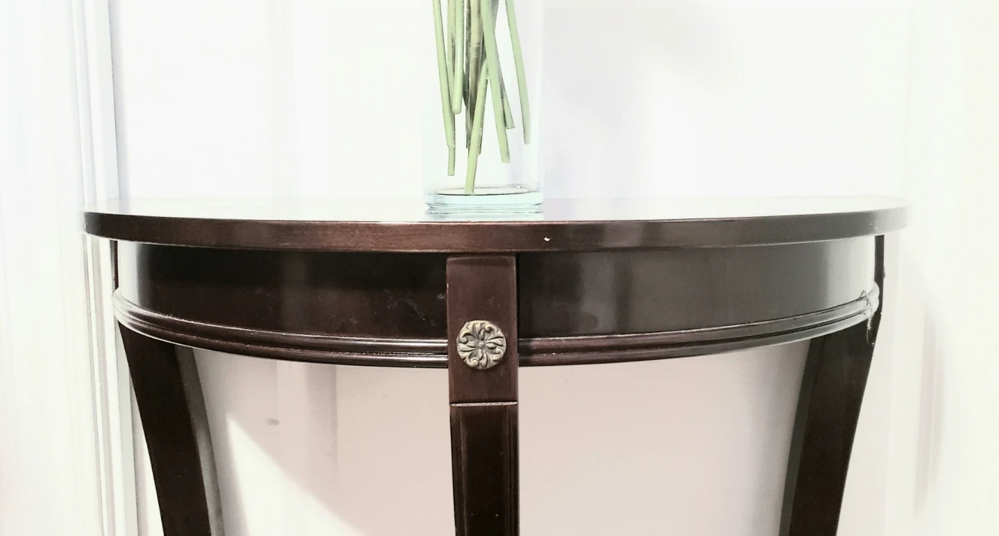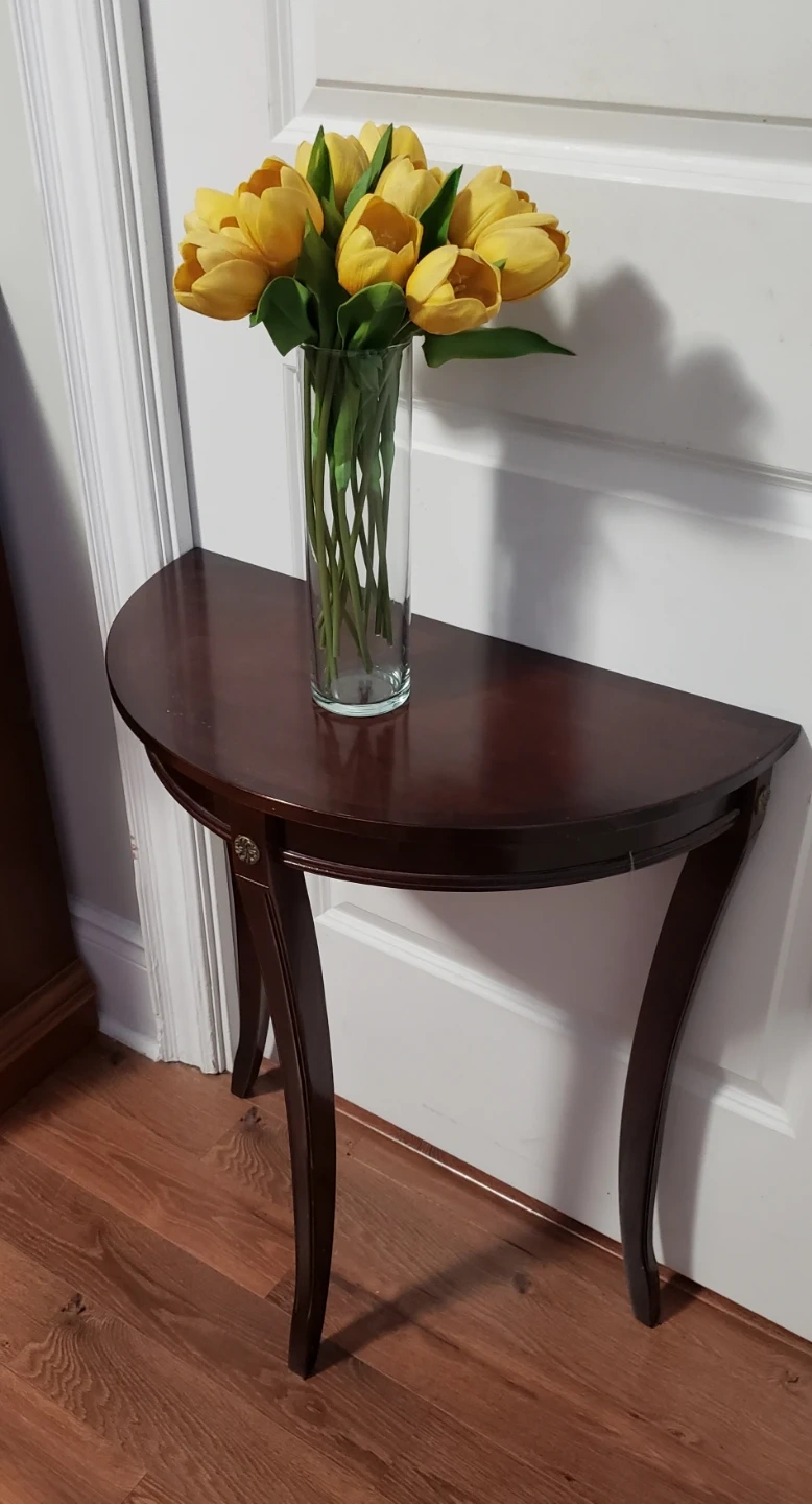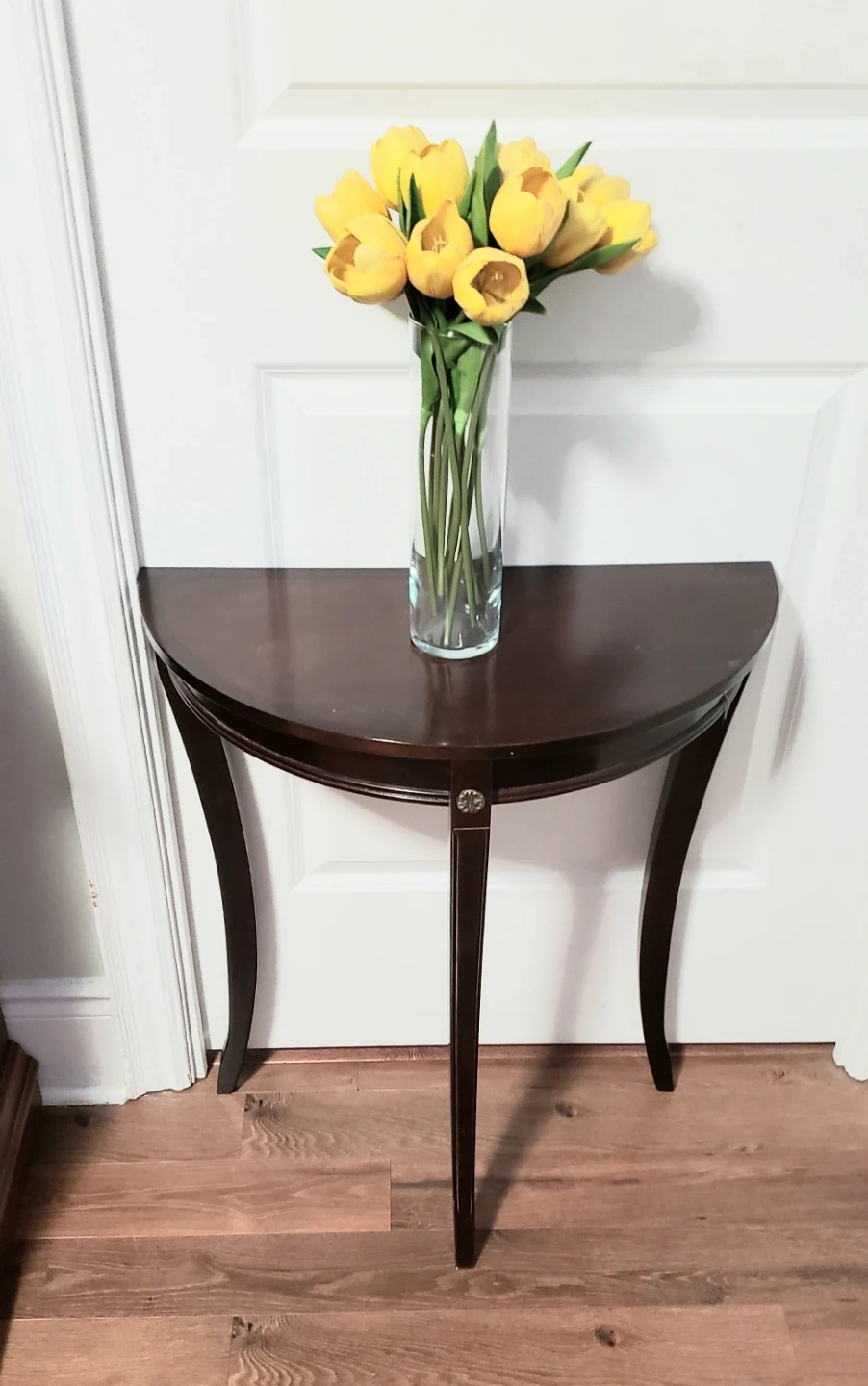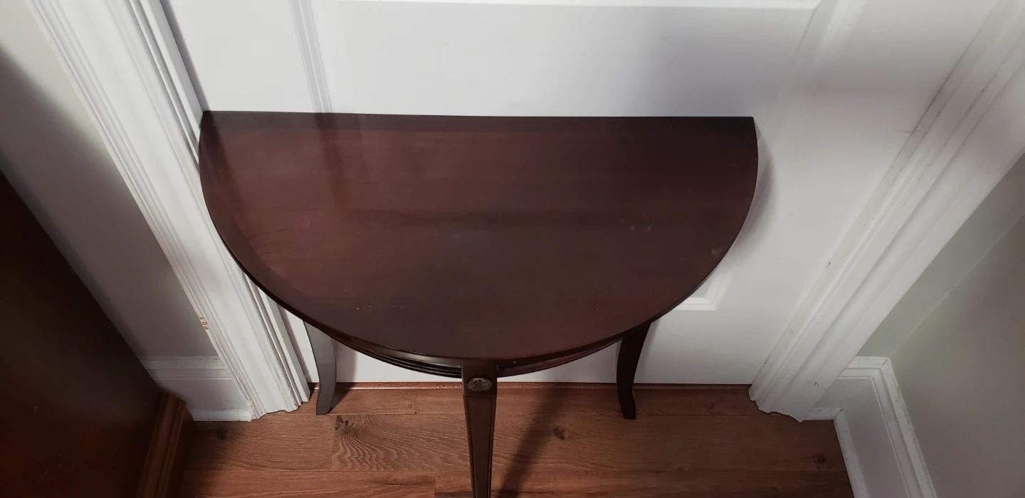 Selling a lovely dark brown half-moon console table! It's perfect in an entryway or hallway.