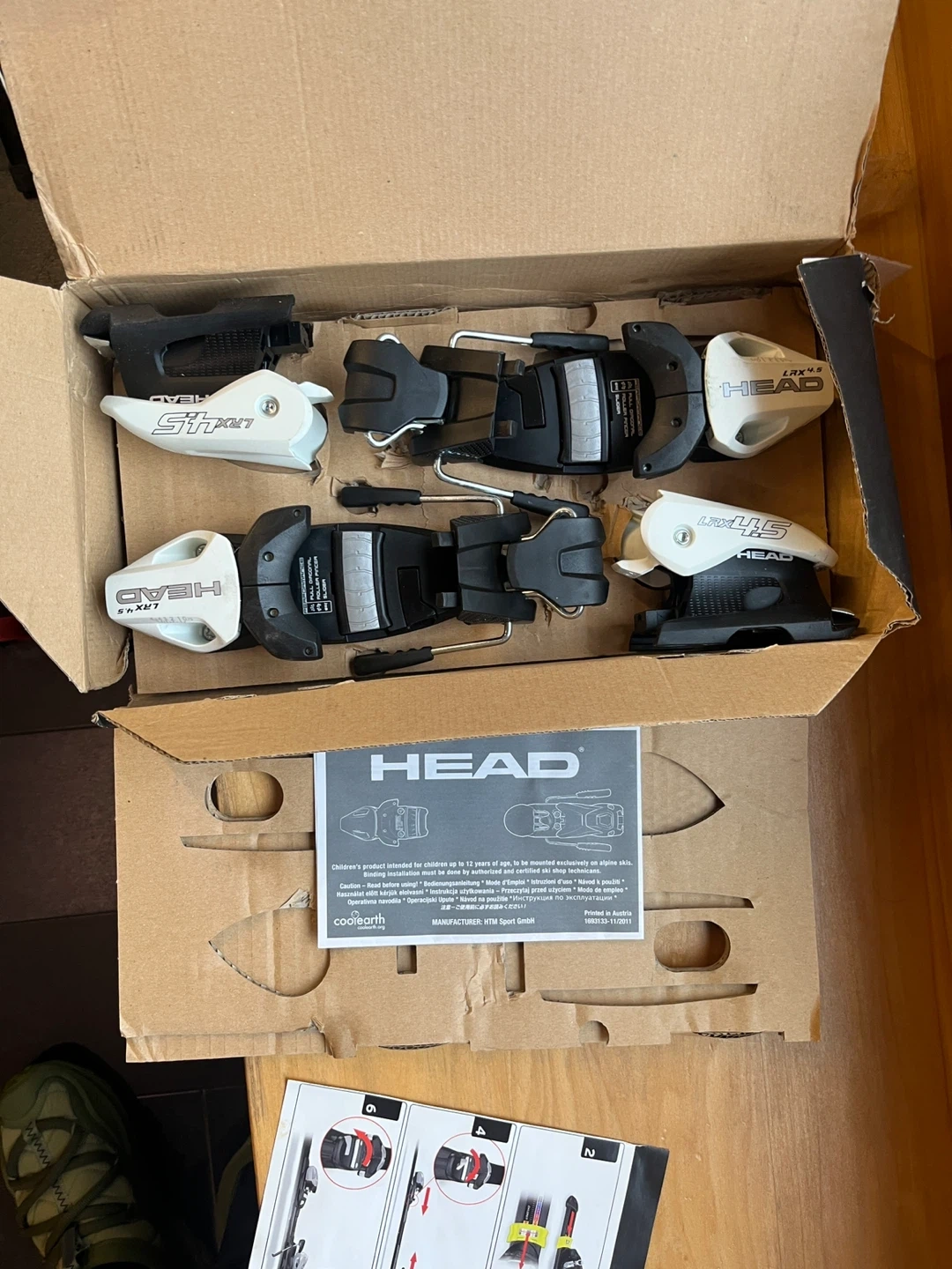 Selling a set of HEAD LRX 4.5 AC alpine ski bindings in solid white and black. They are in great condition and come with the original box! Perfect for hitting the slopes this winter