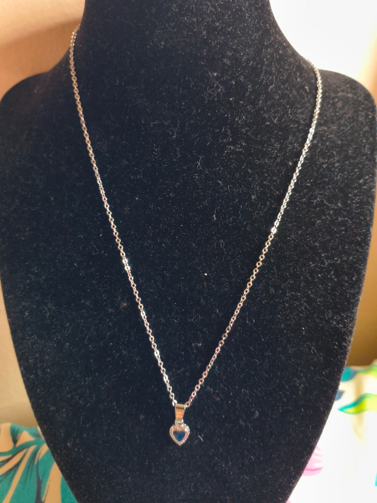 15Cute silver necklace with a heart pendant! The chain is thin and delicate, perfect for everyday wear or layering with other necklaces