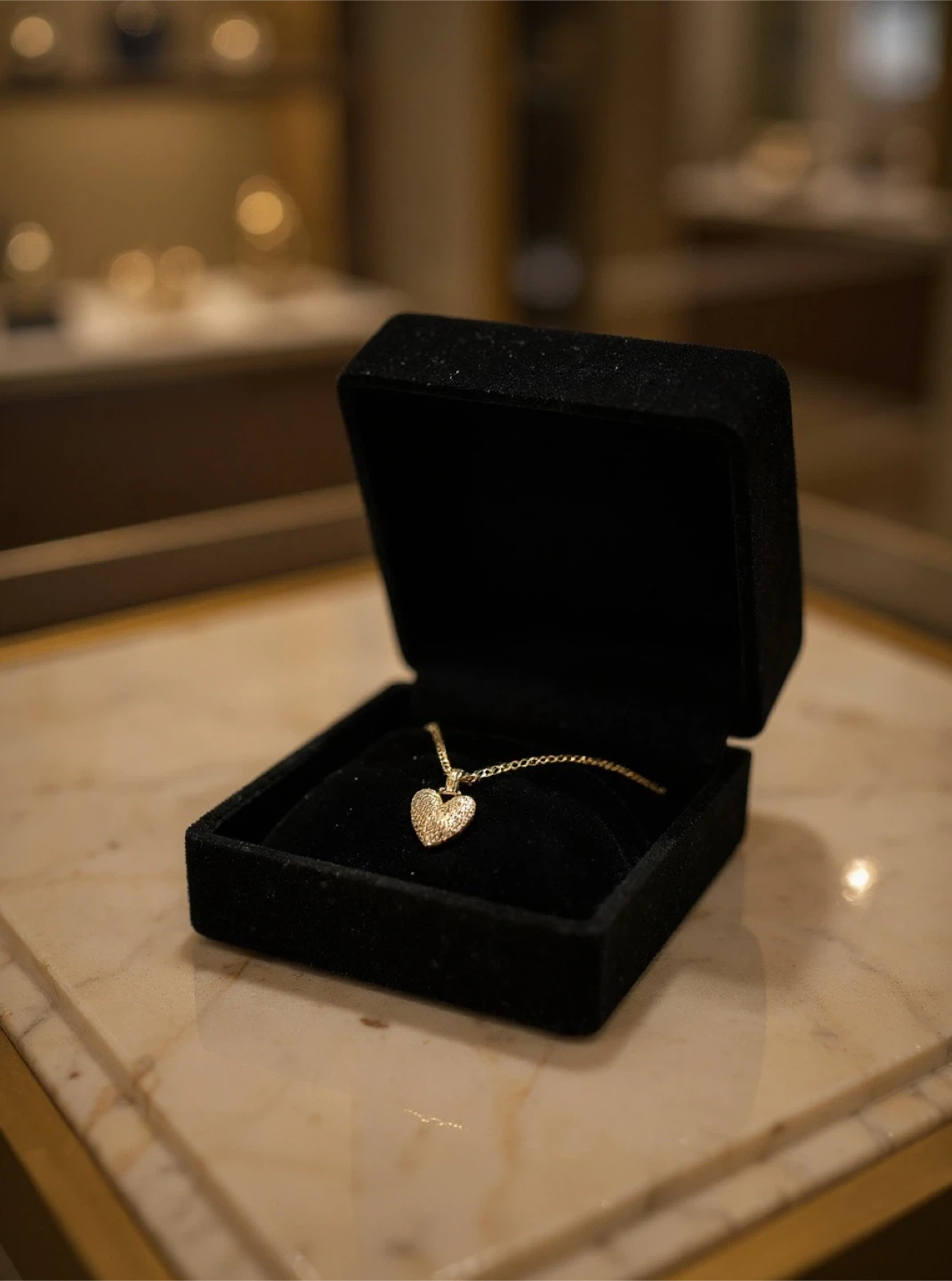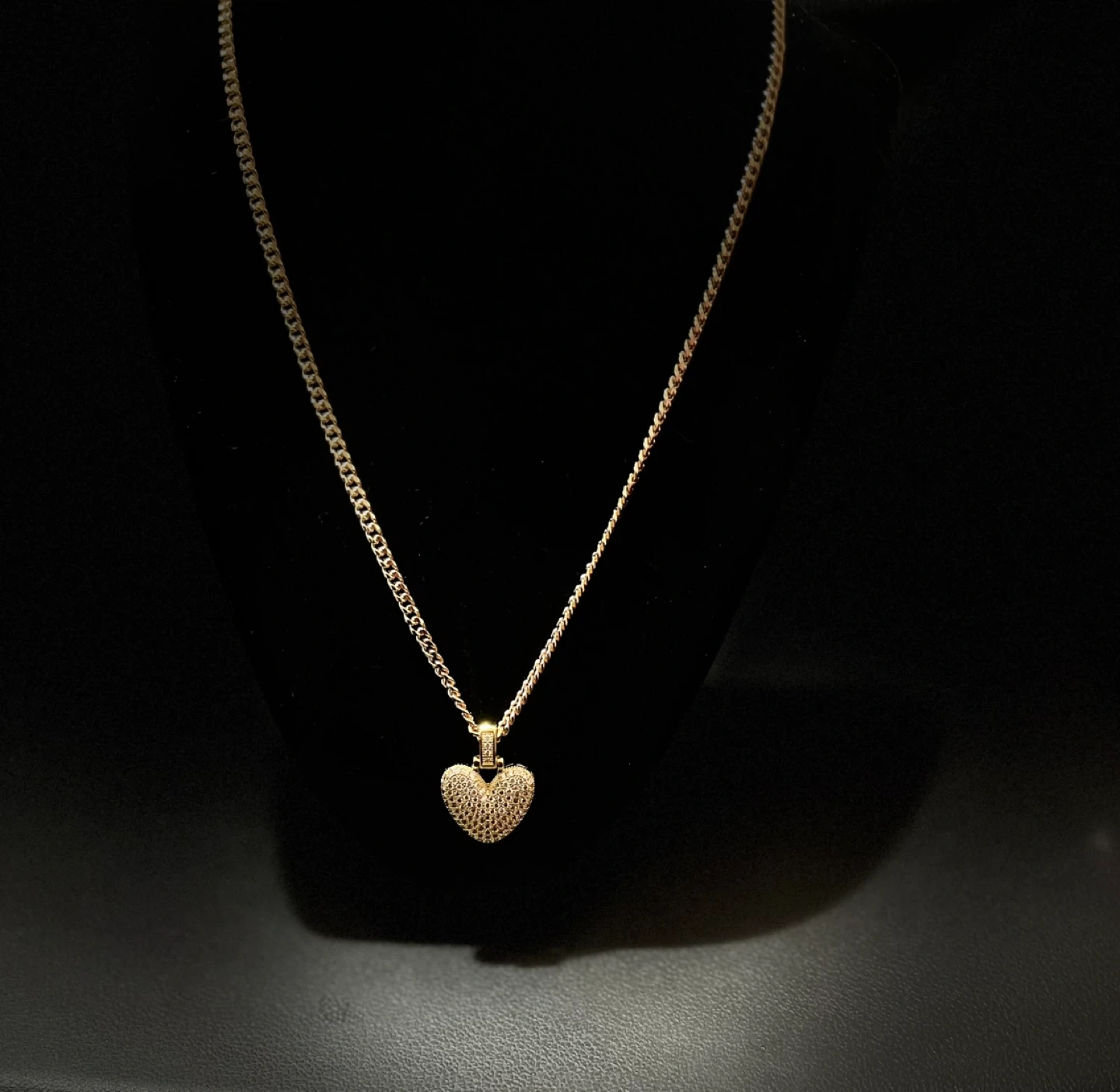 Selling a lovely heart pendant necklace. It is 14k gold filled, perfect for gifting or keeping it safe. The necklace features a delicate chain and a heart-shaped pendant. It's in great condition and ready to add a touch of elegance to your style
